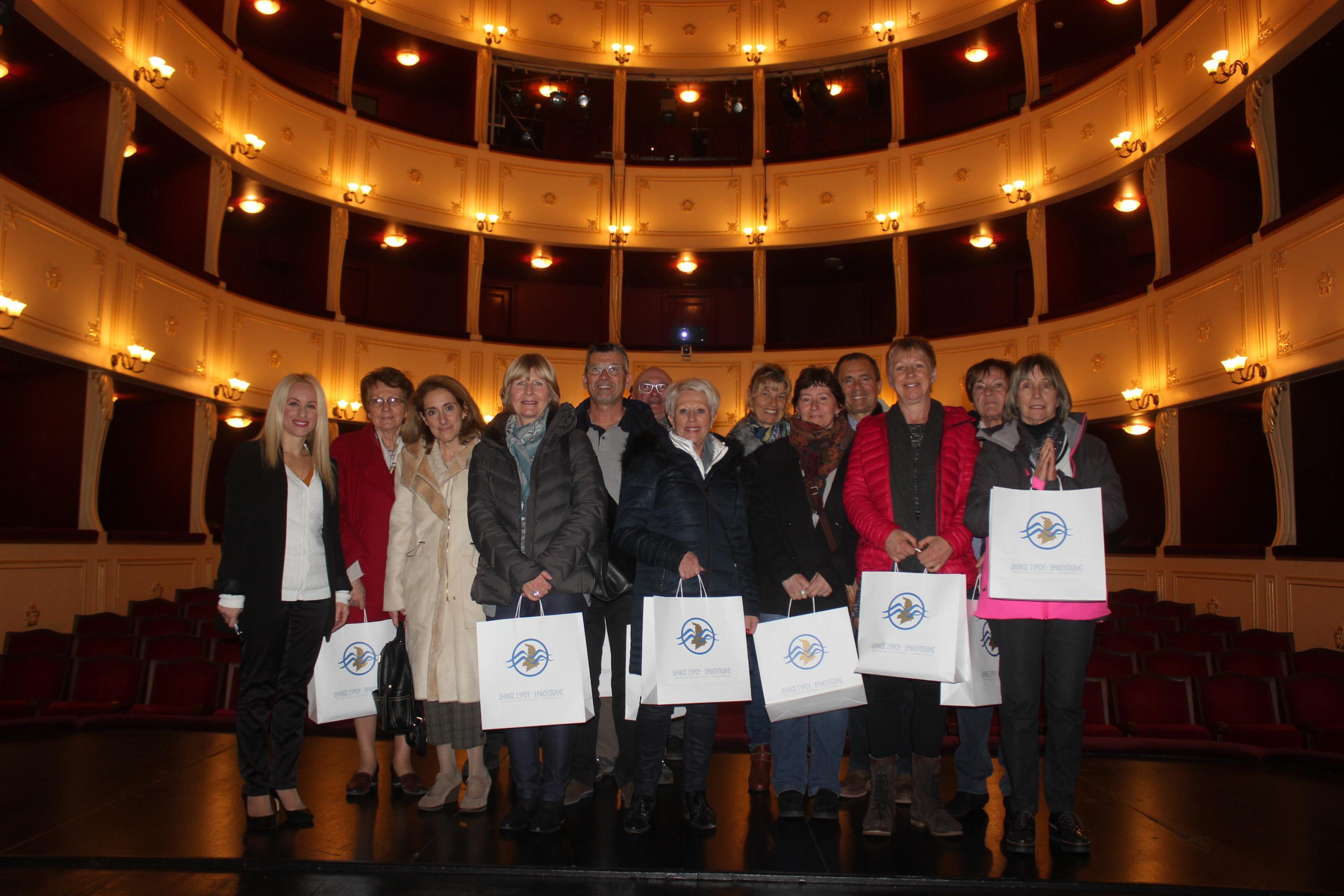 Την παράσταση παρακολούθησαν, μεταξύ άλλων και τα μέλη της αντιπροσωπίας από την πόλη Grillon της Γαλλίας, τα οποία επισκέφτηκαν τη Σύρο για να λάβουν μέρος στις αποκριάτικες εκδηλώσεις του νησιού.