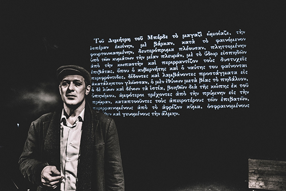 Ο Θανάσης Σαράντος ως αφηγητής, ερμηνεύει μια περσόνα του Παπαδιαμάντη, αυτή του αφηγητή που κρυφοκοιτάζει τη δράση και μεταμορφώνεται σε όλα τα πρόσωπα που αφηγείται, με τη συνδρομή της μουσικής και των ήχων από τον συνθέτη Λάμπρο Πηγούνη που ερμηνεύεται ζωντανά από τον μουσικό Γιώργο Τζιαφέττα.
