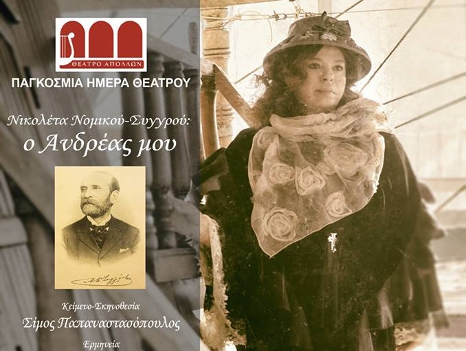 Θα παρουσιαστεί στο ιστορικό Θέατρο Απόλλων, στις 21:00, η μοναδική παράσταση σε σκηνοθεσία του Σίμου Παπαναστασόπουλου «Νικολέτα Νομικού Συγγρού: Ο Ανδρέας μου» με ελεύθερη είσοδο.
