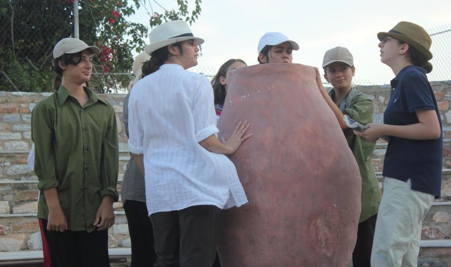 Σημειώνεται ότι, στην έναρξη της παράστασης, τα παιδιά μετέφεραν με το δικό τους τρόπο τη συγκίνηση που ένιωσαν, όταν η ομάδα τους επισκέφτηκε στην Αθήνα μία έκθεση με θέμα τους πρόσφυγες. Η παρουσίασή τους σκηνοθετήθηκε από τους ίδιους τους μαθητές, προκαλώντας την έκπληξη και τον θαυμασμό της κ. Καραγιαννίδου, η οποία δεν γνώριζε τίποτα γι’ αυτό. «Είμαι πολύ υπερήφανη γι’ αυτά τα παιδιά, κάποια εκ των οποίων βρίσκονται μαζί μου στο εργαστήρι 4-6 χρόνια. Είναι πλέον ψημένα και έμπειρα», δήλωσε χαρακτηριστικά.