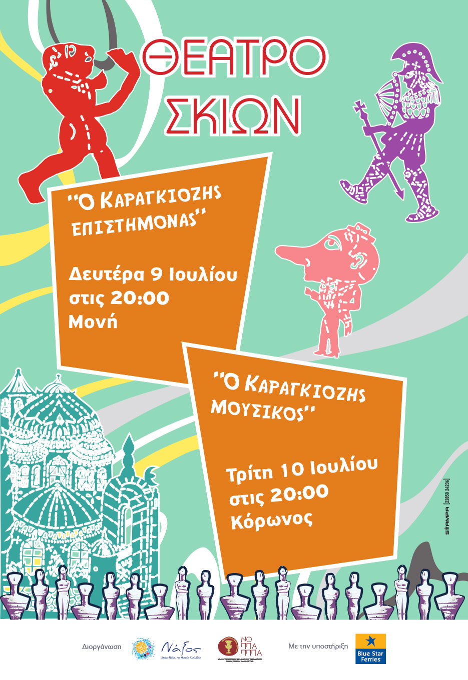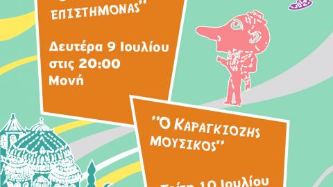 Πέμπτη, 26 Ιουλίου, 21:00, Χώρα-Παραλία και Παρασκευή, 27 Ιουλίου, 21:00 Απείρανθος, Κουκλοθέατρο «Η Πριγκίπισσα Ροζελίνα και ο βάτραχος».