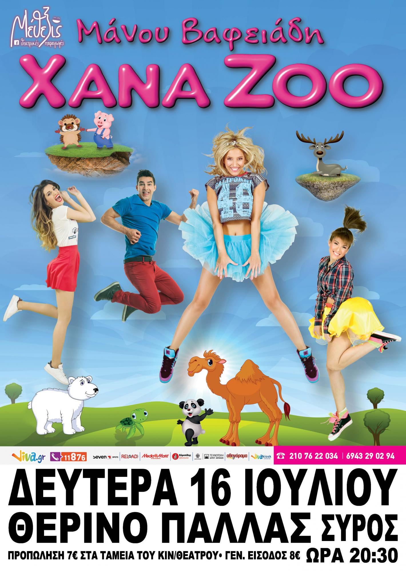 Η παιδική σκηνή του Χρήστου Τριπόδη και η Εταιρεία Μέθεξις, παρουσιάζουν τη θρυλική παράσταση ΧΑΝΑ ΖΟΟ στη Σύρο στο Θερινό Παλλάς τη Δευτέρα 16 Ιουλίου στις 20:30 για μια μοναδική παράσταση.