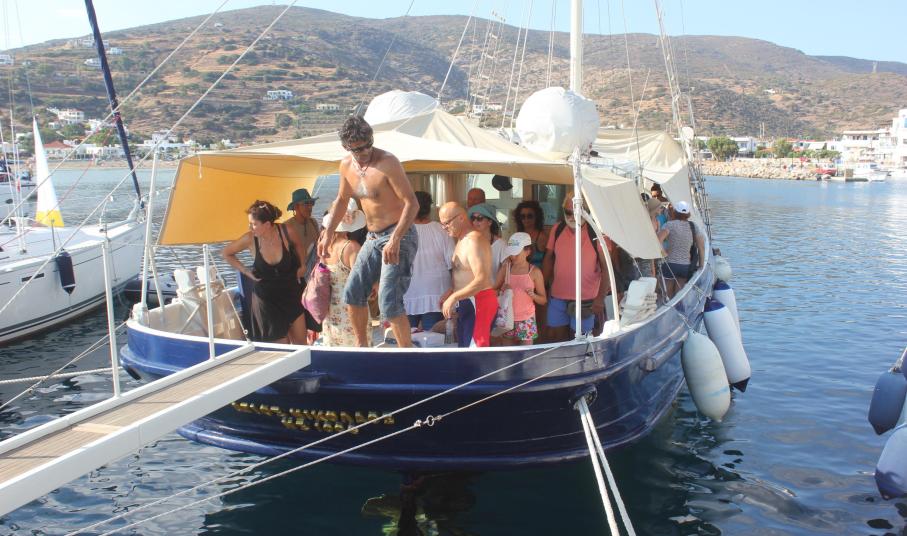 Μέλη καλλιτεχνικών ομάδων, αλλά και αρκετοί φιλότεχνοι του νησιού ταξίδεψαν στην Άνδρο με το παραδοσιακό σκάφος «Άγιος Νικόλαος», στο πλαίσιο ημερήσιας κρουαζιέρας που διοργάνωσε το Ταξιδιωτικό Γραφείο «Siros Travel» του Αντώνη Μαραγκού, με αφορμή τη συγκεκριμένη θεατρική παράσταση.