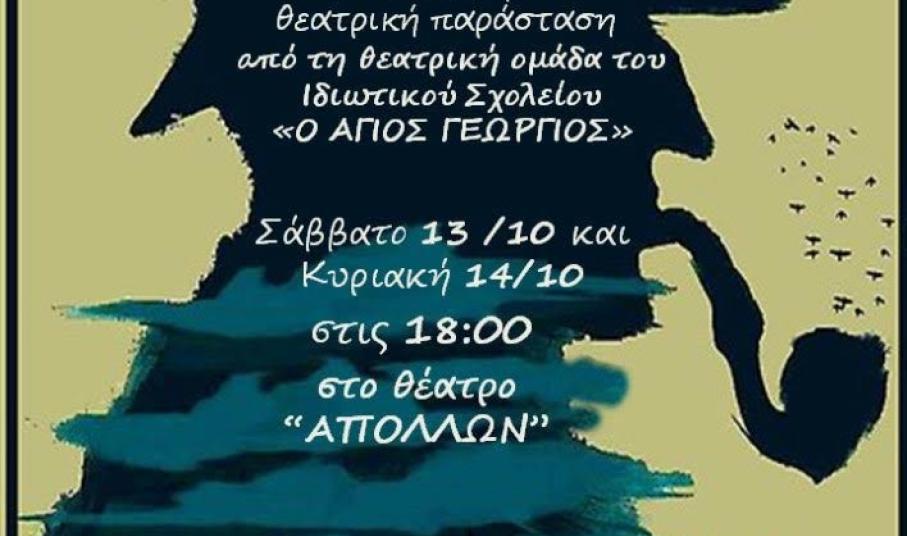 Απαντήσεις στα παραπάνω ερωτήματα θα δώσει η θεατρική ομάδα μαθητών, γονέων και εκπαιδευτικών του «Αγίου Γεωργίου», μέσα από το έργο «Ο Σέρλοκ Χολμς και το γαλάζιο ρουμπίνι», μια θεατρική διασκευή για παιδιά του ομώνυμου διηγήματος από τις «Περιπέτειες του Σέρλοκ Χολμς» του Σερ Άρθουρ Κόναν Ντόιλ.