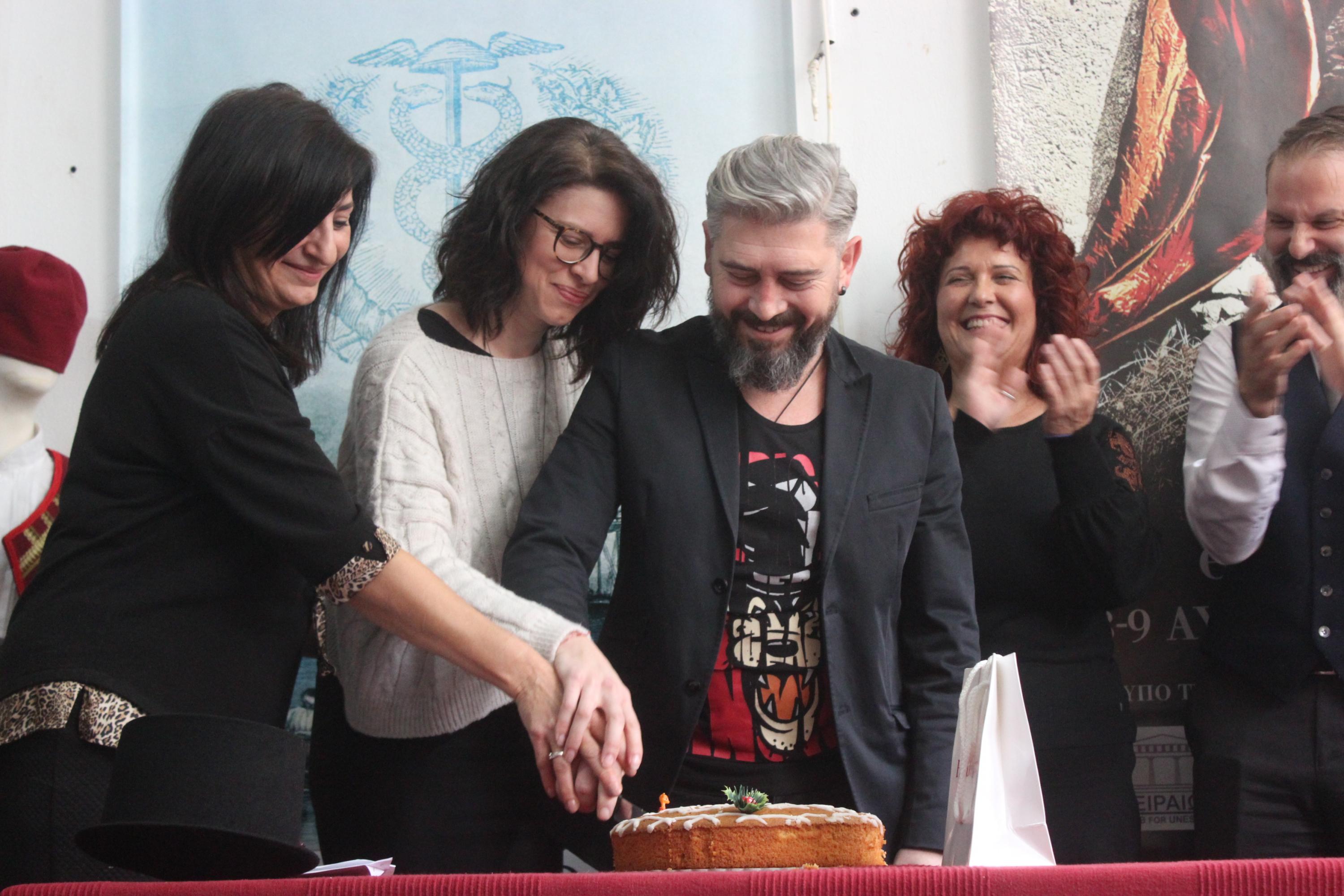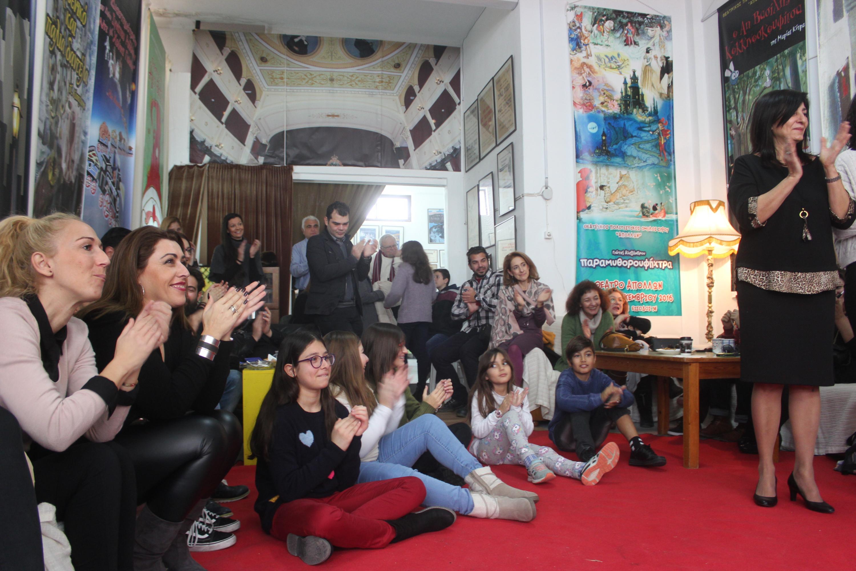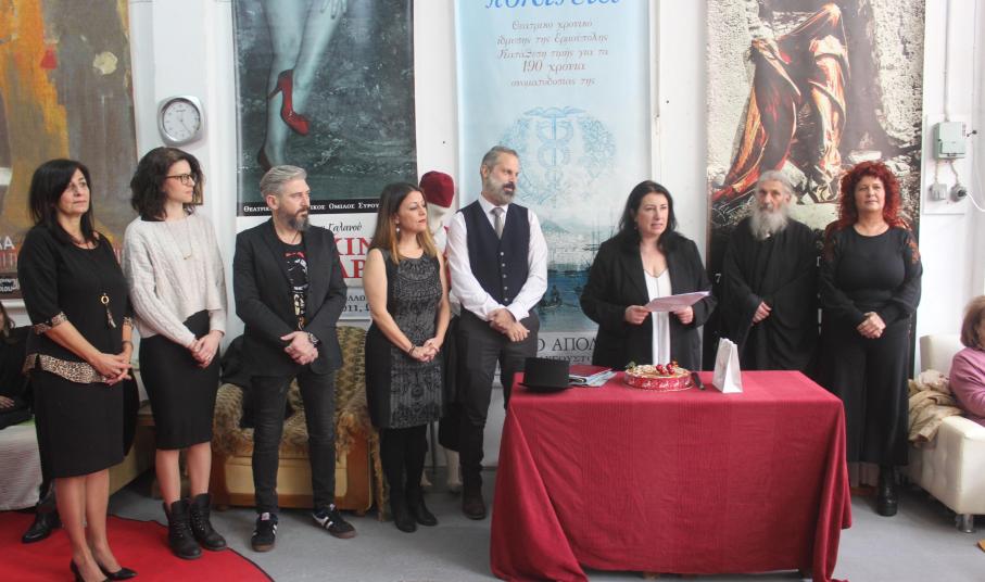 Εκπρόσωποι του Δήμου Σύρου – Ερμούπολης, πρόεδροι πολιτιστικών συλλόγων και φορέων του νησιού (ΛΕΣ, Μουσικός Όμιλος, Σύλλογοι Ποντίων και Βορειοελλαδιτών, Μικρασιατών), μέλη και φίλοι αντάμωσαν στα γραφεία του Ομίλου, καθισμένοι ανάμεσα σε σκηνικά παλαιότερων παραστάσεων που αξιοποιήθηκαν για τις ανάγκες της εκδήλωσης αλλά και σε αφίσες και banners «Απολλώνιων» παραγωγών που αγαπήθηκαν και άφησαν τη δική τους ιστορία στην πρωτεύουσα των Κυκλάδων.