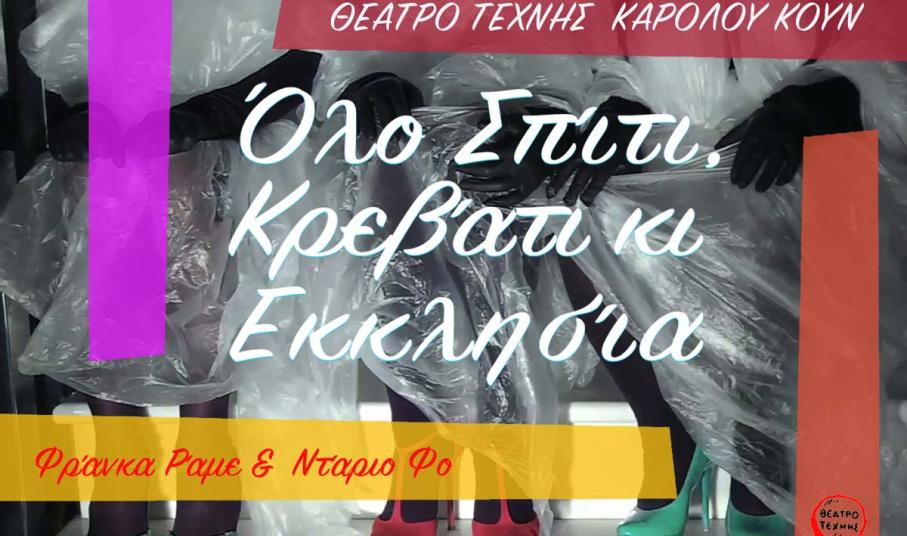 Την κατάσταση της γυναίκας στον σύγχρονο «πολιτισμένο» κόσμο, της αδερφής, της μητέρας, της φίλης, της νοικοκυράς ή της εργαζόμενης που έχει ανάγκη από αγάπη και σεβασμό, πραγματεύεται το εμβληματικό έργο των Ντάριο Φο και Φράνκα Ράμε «Όλο Σπίτι, Κρεβάτι κι Εκκλησία», η πρώτη παραγωγή του Θεάτρου Τέχνης Καρόλου Κουν που «ταξιδεύει» σε όλη την Ελλάδα και η πρώτη που φιλοξενείται στο νησί της Σύρου.