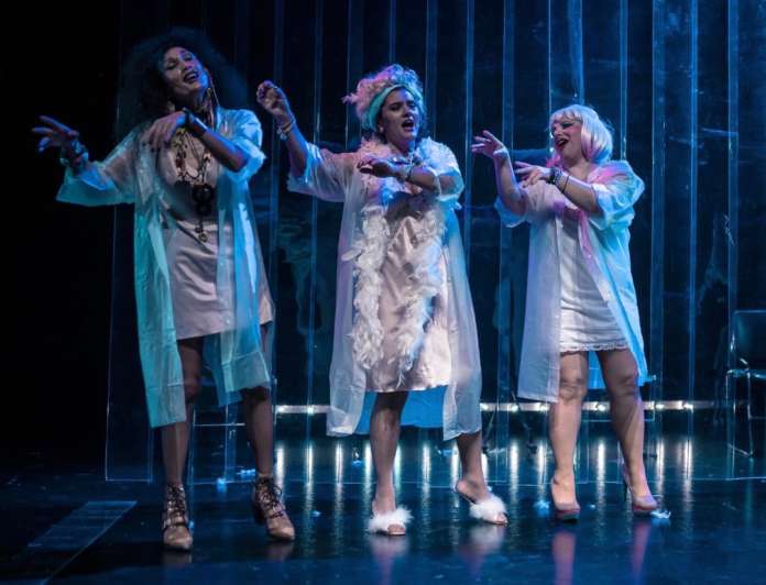 Η παράσταση σε σκηνοθεσία Κωστή Καπελώνη και μουσική Σταμάτη Κραουνάκη, αποτελούμενη από τρεις γυναικείους μονολόγους, που ερμηνεύουν οι ηθοποιοί Τζένη Κόλλια, Γιάννα Μαλακατέ και Ράνια Παπαδάκου, θα παρουσιαστεί στις 16 και 17 Φεβρουαρίου 2019 στο Θέατρο Απόλλων, στο πλαίσιο του Συριανού Καρναβαλιού «Γεώργιος Σουρής».