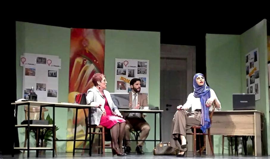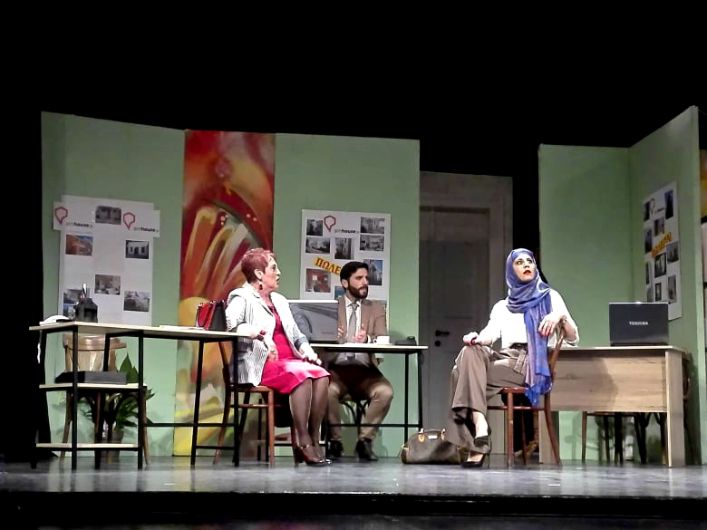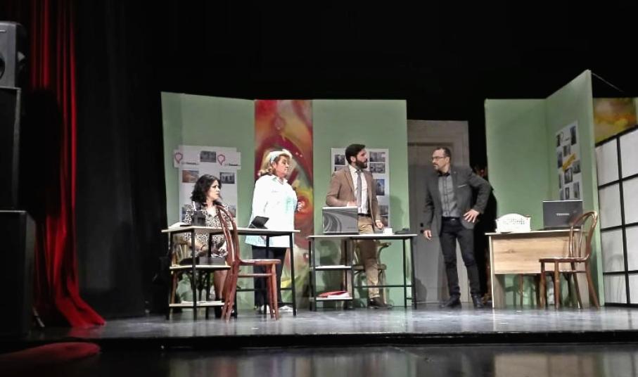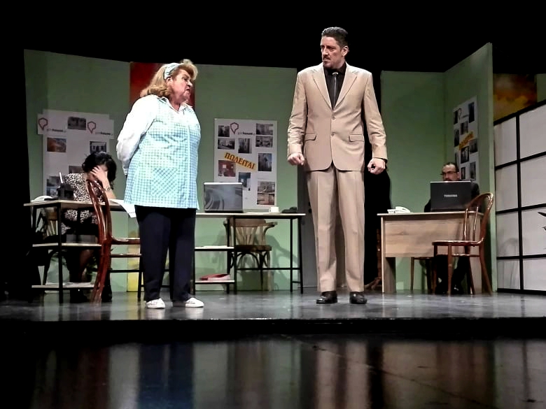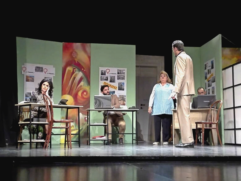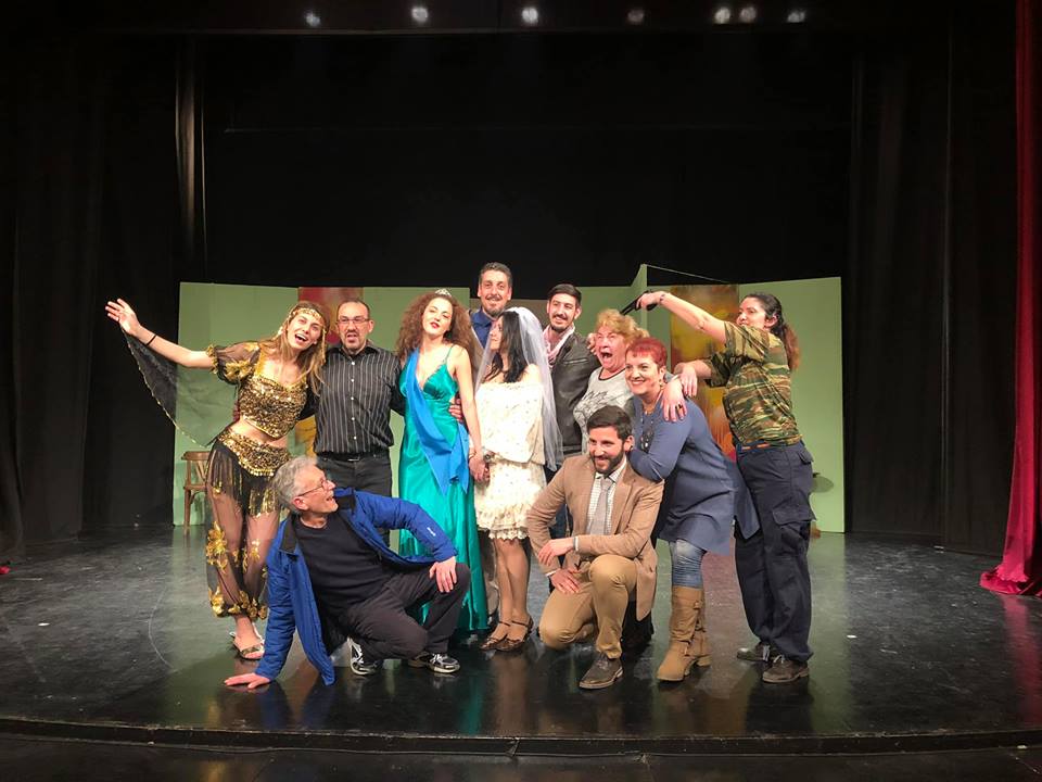 Στην παράσταση παίζουν με σειρά εμφάνισης: Δώρα Μουστάκα, Δημήτρης Πεϊχαμπέρης, Δημήτρης Βουτσίνος, Αργυρώ Γαλαντή, Γιάννης Χαλκιάς, Λάζαρος Παπαδόπουλος, Ευαγγελία Λουμή, Άννα Μαρία Σαρρή, Μύριαμ Μαραγκού, Μαρία Κακαβή, Στάθης Μπίρμπας, Γρηγόρης Γαλαντής.