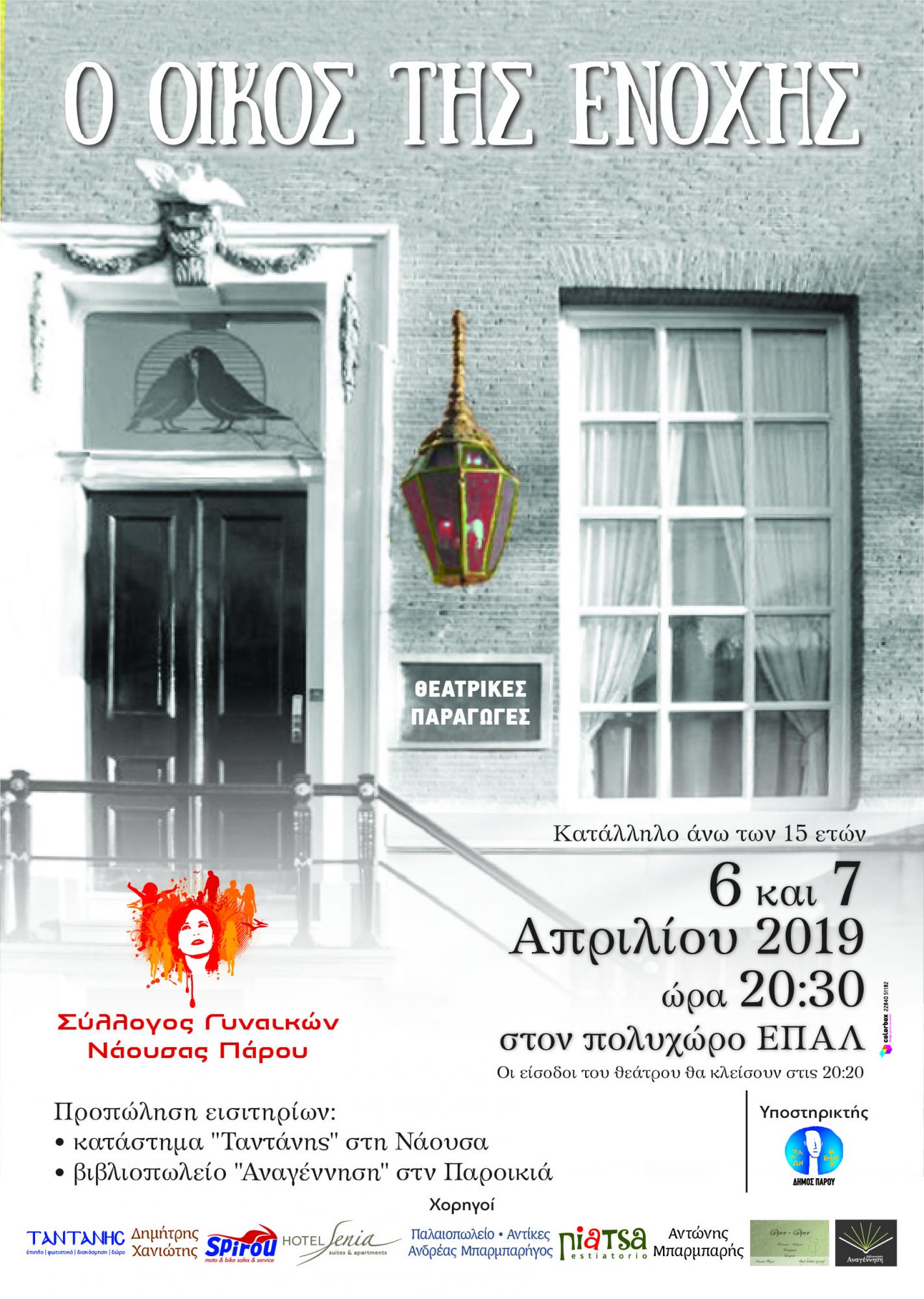 Οι νέες παραστάσεις θα δοθούν στον Πολυχώρο του ΕΠΑΛ Πάρου στην Παροικιά, το Σάββατο 6 και την Κυριακή 7 Απριλίου 2019 στις 20:30!