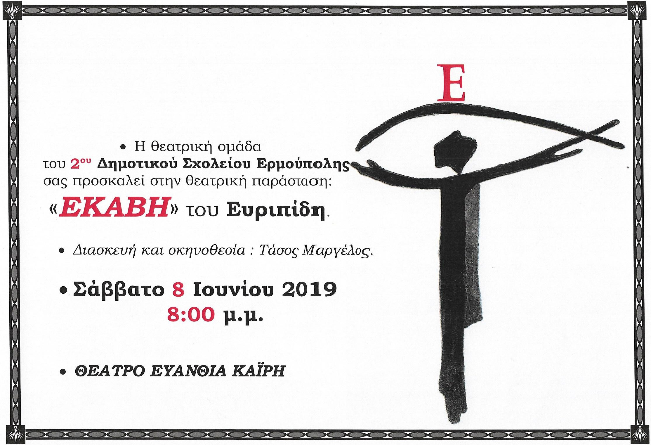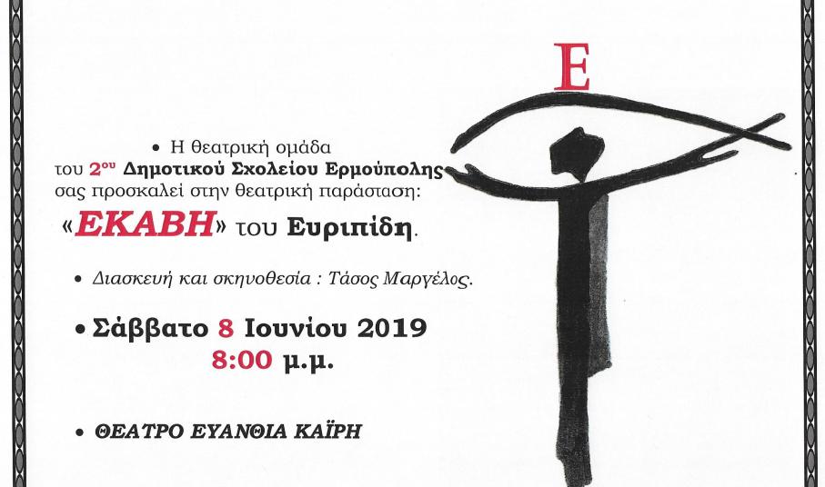 Η θεατρική ομάδα του 2ου Δημοτικού Σχολείου Ερμούπολης σας προσκαλεί στην παράσταση "ΕΚΑΒΗ" ΤΟΥ Ευριπίδη, η οποία είναι αφιερωμένη στα 100 χρόνια απ' τη γενοκτονία των Ποντίων.
