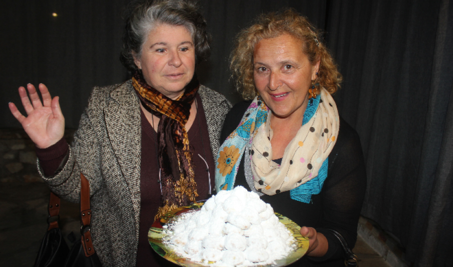 Σημειώνεται ότι, στην πρώτη παρουσίαση των «Κουραμπιέδων», το ρόλο της Βικτώριας ερμήνευσε η Μαρία Κακαβή, με την οποία ο Πολιτιστικός Σύλλογος Καμινίων διατηρεί σταθερή και αγαστή συνεργασία, καθώς είναι από τους πρώτους ερασιτέχνες ηθοποιούς της Σύρου οι οποίοι υποστήριξαν την προσπάθειά του για τη δημιουργία θεατρικών παραστάσεων.