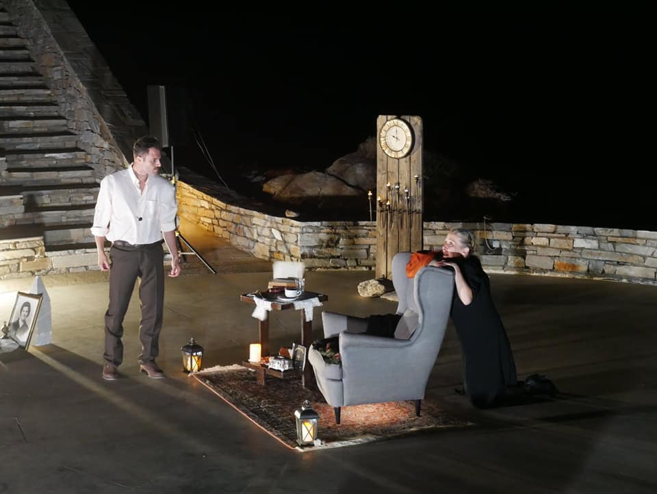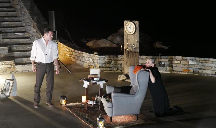 Η Μαρία Τζανουκάκη στο ρόλο της Γυναίκας με τα μαύρα και ο Τάσος Χρυσόπουλος, η νοερή αντρική φιγούρα του ποιήματος, ταξίδεψαν μοναδικά κατοίκους και επισκέπτες της Ίου στους υπέροχους και διαχρονικούς στίχους του Γιάννη Ρίτσου.