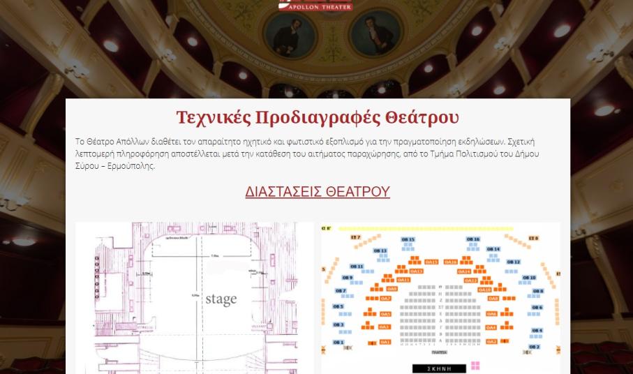 Στόχος του Τμήματος Πολιτισμού του Δήμου Σύρου - Ερμούπολης είναι το Θέατρο Απόλλων να αναδείξει την ομορφιά του και τη δράση του μέσα από το διαδίκτυο με μια σύγχρονη δίγλωσση ιστοσελίδα. Η καινούρια σελίδα (https://apollontheater.gr) είναι σύμφωνη με τα νέα πρότυπα ασφαλείας & αισθητικής, είναι εύκολη στην πλοήγηση για το χρήστη και λειτουργική σε tablet και κινητά.