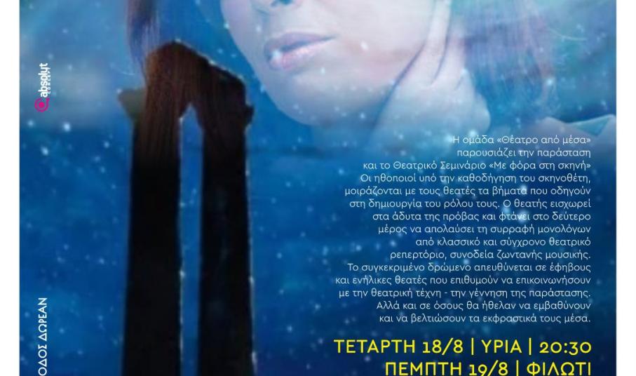Η ομάδα "Θέατρο από μέσα" παρουσιάζει στη Νάξο την Τετάρτη 18 Αυγούστου την παράσταση και το θεατρικό σεμινάριο "Με φόρα στη σκηνή".