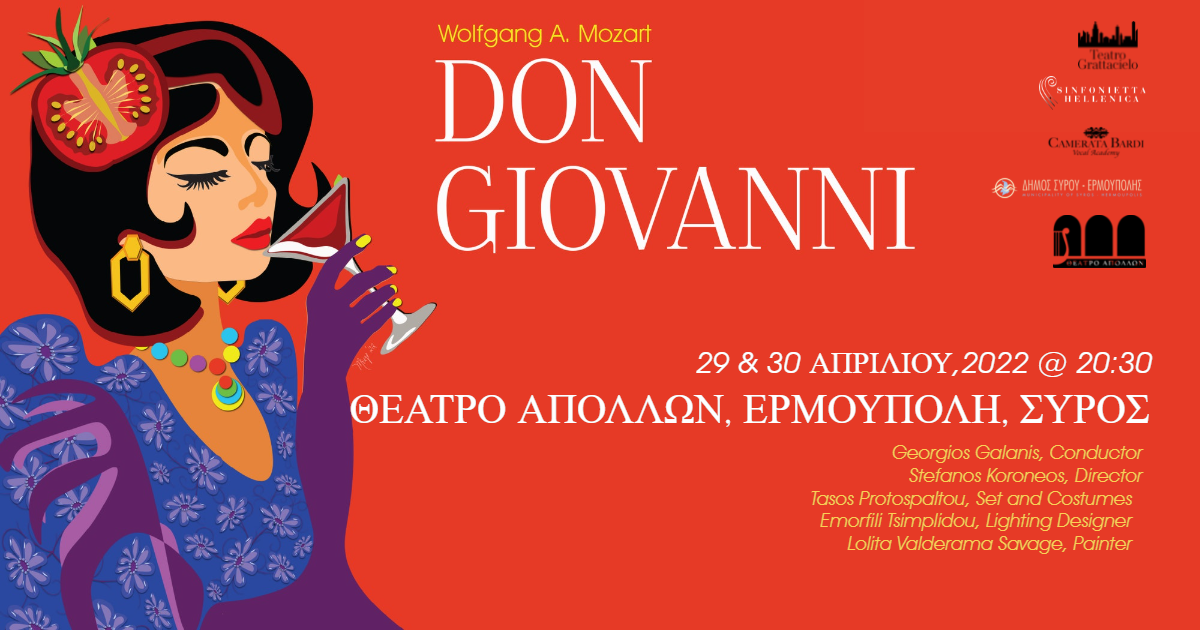 Η ακαδημία νέων λυρικών τραγουδιστών Camerata Bardi του Teatro Grattacielo της Νέας Υόρκης και η Ελληνική Συμφωνιέτα παρουσιάζουν την περίφημη όπερα του Μότσαρτ “Don Giovanni” στο Θέατρο Απόλλων της Σύρου στις 29 και 30 Απριλίου 2022. Το έργο θα είναι μια συμπαραγωγή των δύο παραπάνω καλλιτεχνικών φορέων και του Δήμου Σύρου- Ερμούπολης στο πλαίσιο των πολιτιστικών εκδηλώσεων για το έτος 2022.