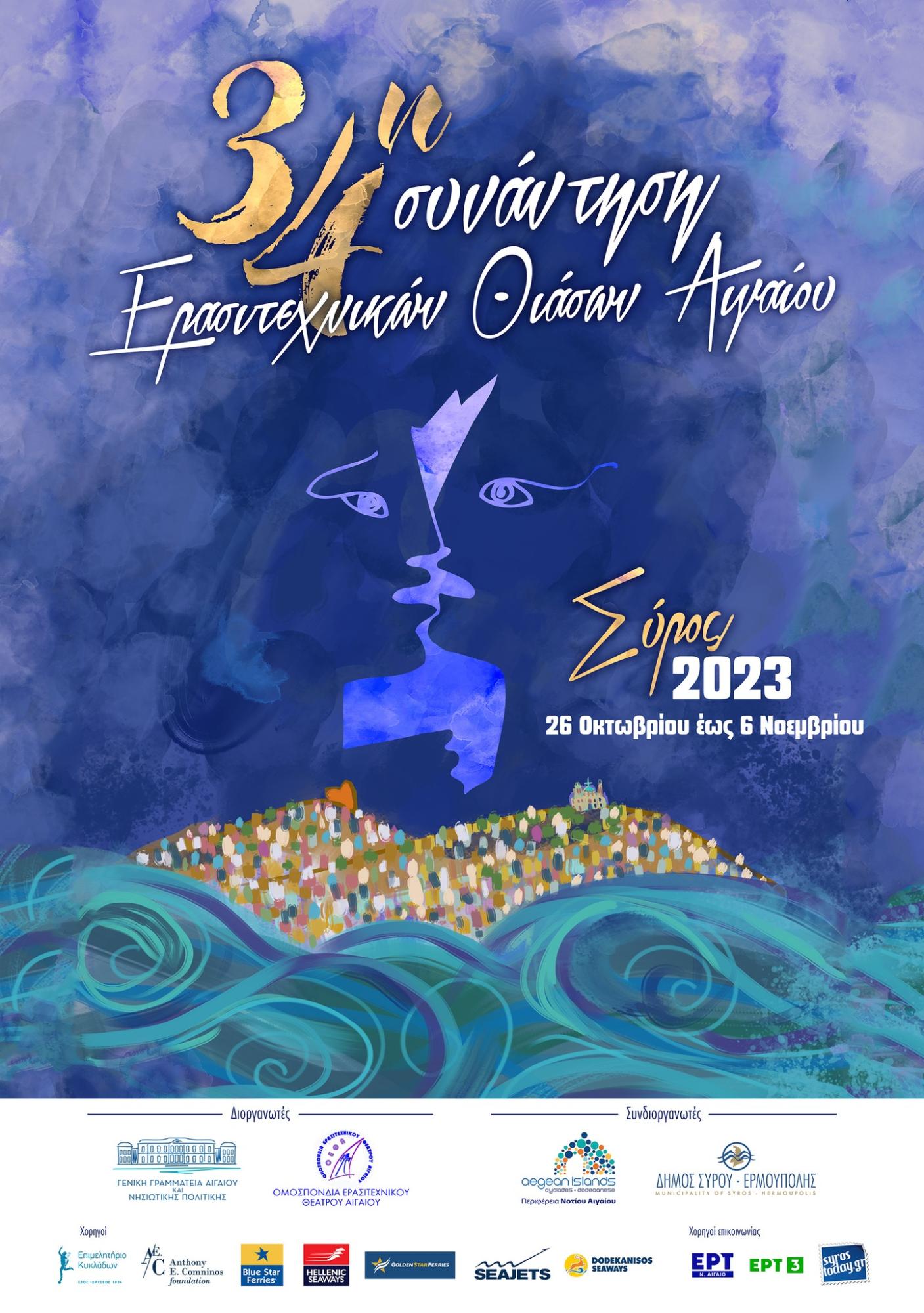 Το μεγάλο πολιτιστικό γεγονός, η 34η Συνάντηση Ερασιτεχνικών Θιάσων Αιγαίου ξεκινάει σήμερα στην Σύρο. 27 θίασοι από τα νησιά του Αιγαίου παρουσιάζουν τις δημιουργίες τους με ελεύθερη είσοδο. Επιπλέον συζητήσεις και σεμινάρια για την επιμόρφωση των ερασιτεχνών, εκθέσεις και παράλληλες εκδηλώσεις με τις οποίες αναδεικνύεται το βιομηχανικό και πολιτιστικό παρελθόν του νησιού, με έμφαση στο ρεμπέτικο και το Μάρκο Βαμβακάρη.