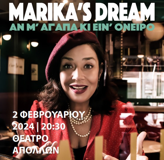 Τη Παρασκευή στις 2 Φεβρουαρίου στις 20.30 στο θέατρο Απόλλων ο Σύλλογος Μικρασιατών Ερμούπολης Σύρου φιλοξενεί τη  θεατρική παράσταση Marika' s dream: Αν μ'αγαπά κι ειν΄όνειρο ,τιμώντας τα  160 χρόνια από τη λειτουργία του εμβληματικού θεάτρου Απόλλων.