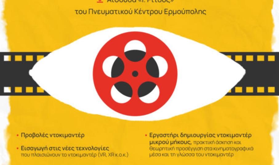 Το Φεστιβάλ περιλαμβάνει εργαστήριο δημιουργίας ντοκιμαντέρ με γυρίσματα και θεωρητική προσέγγιση στα κινηματογραφικά μέσα και τη γλώσσα του ντοκιμαντέρ, με τον Αλέξανδρο Καντόρο, διπλωματούχο κινηματογραφιστή Α.Π.Θ., καθώς επίσης και προβολές βραβευμένων ντοκιμαντέρ και μαθητικών ταινιών μικρού μήκους που έχουν γυριστεί στη Σύρο, με είσοδο ελεύθερη για το κοινό.