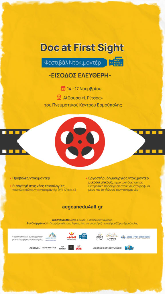 Το 1ο Φεστιβάλ Ντοκιμαντέρ "Doc at First Sight" με θέμα τα μυστικά του κινηματογράφου, έρχεται τον Νοέμβριο στη Σύρο.