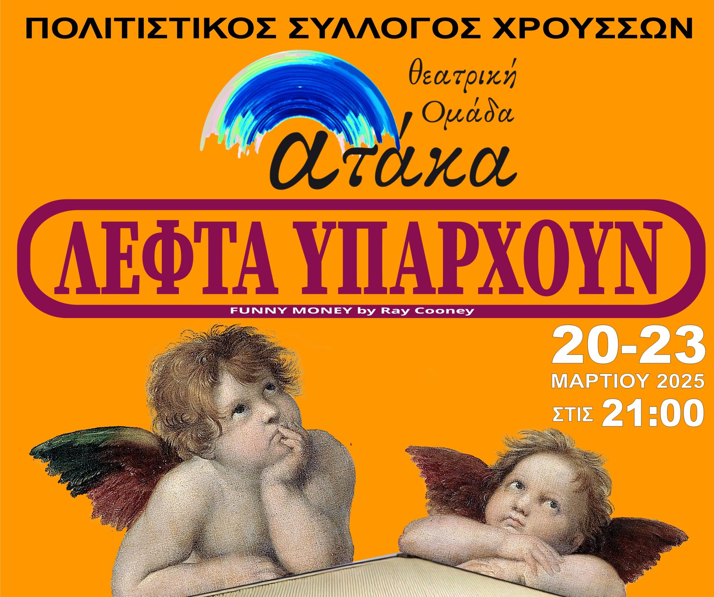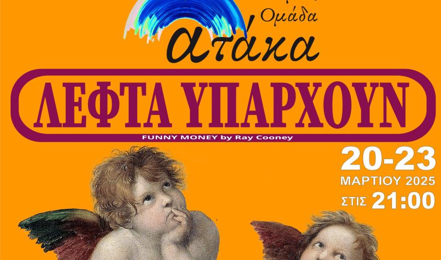 Πρόκειται για μία ξεκαρδιστική κωμωδία καταστάσεων, βασισμένη στο θεατρικό του Ray Cooney, Funny Money, η οποία θα παρουσιαστεί από την Πέμπτη 20 έως και την Κυριακή 23 Μαρτίου, στις 9 το βράδυ, με μέρος των εσόδων της να διατίθενται για φιλανθρωπικούς σκοπούς.