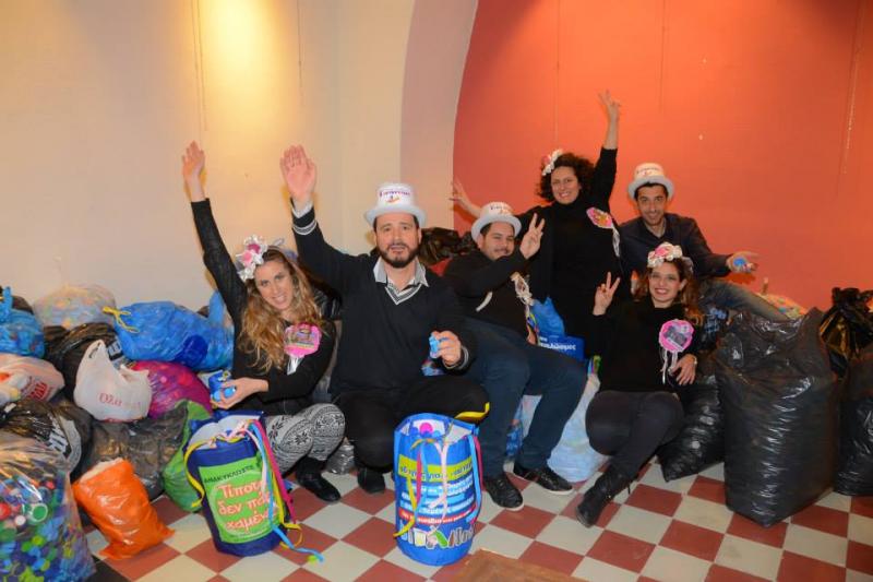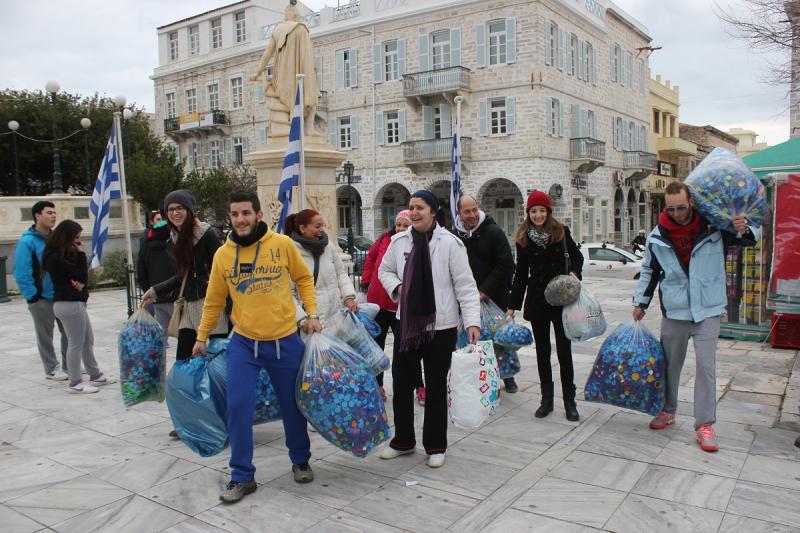 Οι ομάδες, σε μία ακόμη σκυταλοδρομία, κλήθηκαν να γεμίσουν τους σάκους που τους παραδόθηκαν με πλαστικά καπάκια από μπουκάλια, γάλατα, χυμούς, νερά, αναψυκτικά, απορρυπαντικά και άλλα.