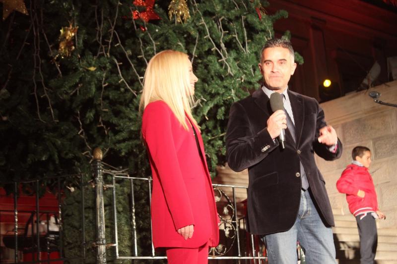 Τη βραδιά άνοιξε η παιδική χορωδία της Ορχήστρας Κυκλάδων και αμέσως μετά ακολούθησε η φωταγώγηση του χριστουγεννιάτικου δέντρου με τον Δήμαρχο Σύρου - Ερμούπολης Γιώργο Μαραγκό και την Αντιδήμαρχο Πολιτισμού Θωμαή Μενδρινού να δίνουν το σύνθημα για την αντίστροφη μέτρηση.