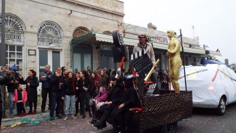 Πρωταγωνιστής της μεγάλης παρέλασης ήταν ο σπουδαίος σατιρικός ποιητής της νεότερης Ελλάδας, Γεώργιος Σουρής (Γεώργιος Μιχαλάκης), συνοδευόμενος στο προσωπικό άρμα του, που επιμελήθηκε η Πηνελόπη Ασλάνογλου, από τους δύο ήρωές του, Φασουλή και Περικλέτο (Δημήτρη και Λάκη Καπέλλα). Οι τρεις τους παρουσίασαν ένα μοναδικό θεατρικό δρώμενο στην Πλατεία Μιαούλη.