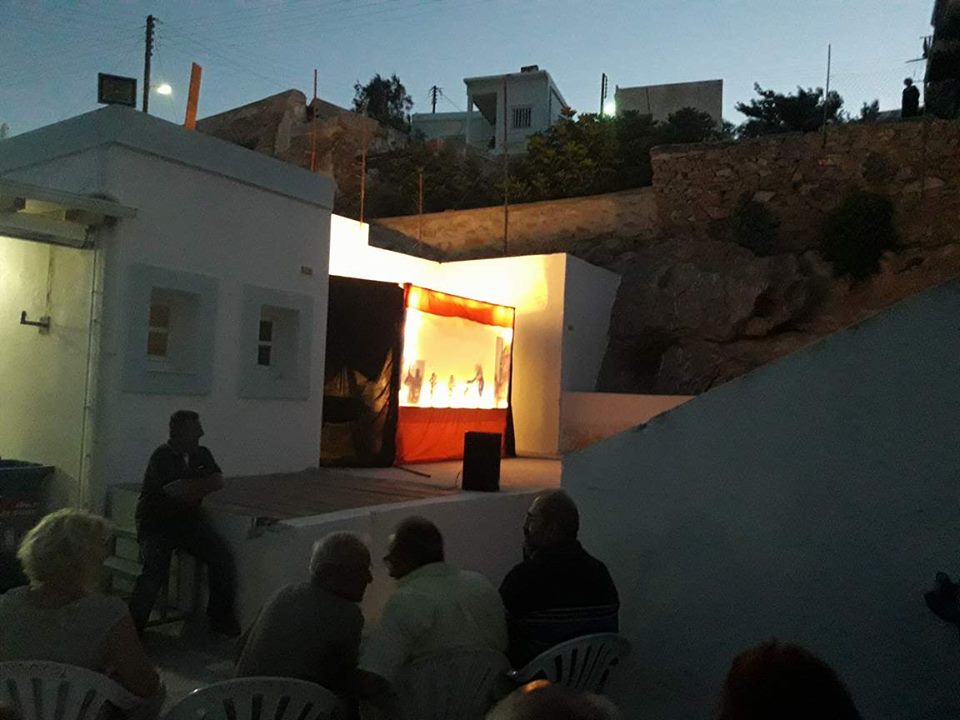 Η παράσταση θεάτρου σκιών «Οι αρραβώνες του Καραγκιόζη» παρουσιάστηκε από τον Λαογραφικό – Χορευτικό Όμιλο «η σοφία της παράδοσης», σε συνεργασία με τον Δήμο Σύρου – Ερμούπολης, στο πλαίσιο των εκδηλώσεων «Ο Καραγκιόζης Συργιανάει στις γειτονιές της Σύρου».