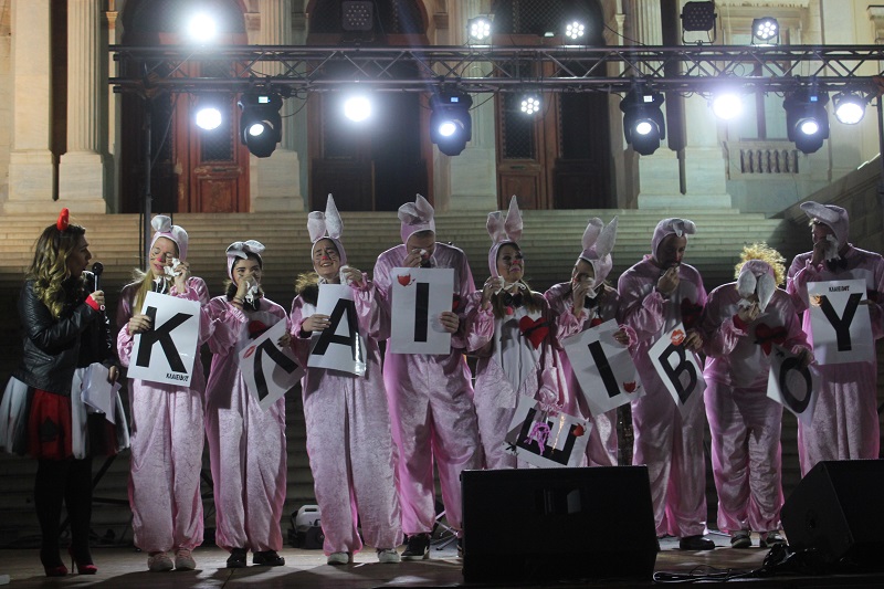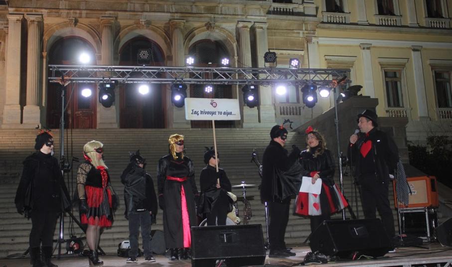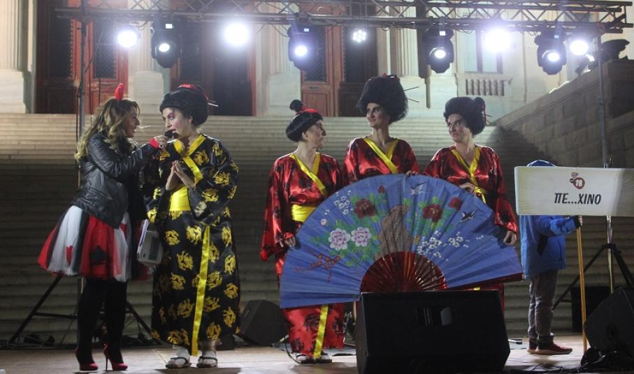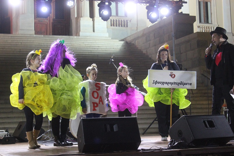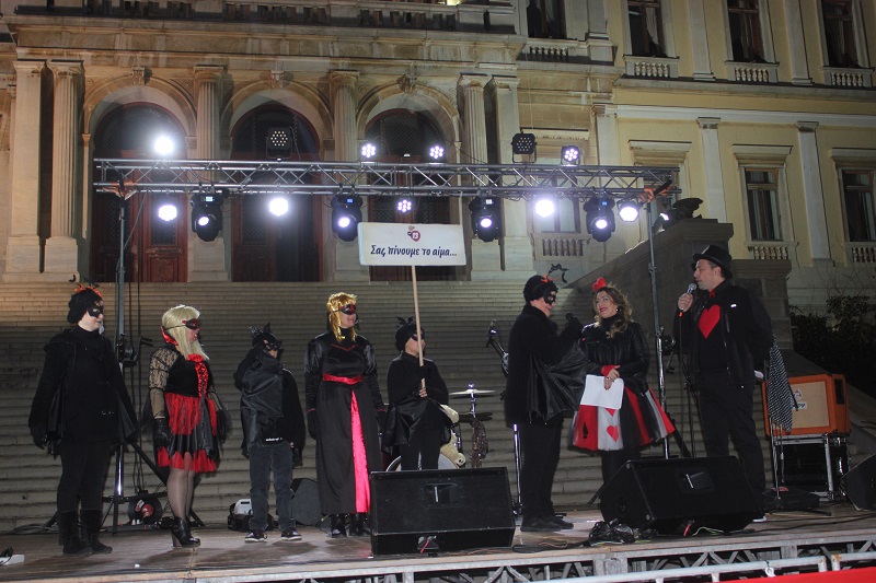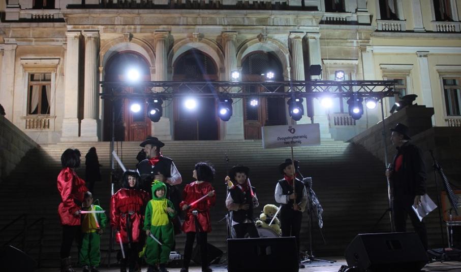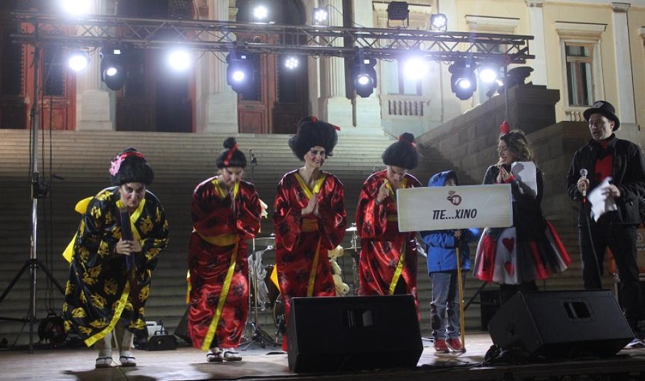 Αμέσως μετά, παρέλασαν στη σκηνή εκπρόσωποι των φετινών καρναβαλικών ομάδων, οι οποίες στο σύνολο είναι 18 (επτά παιδικές και έντεκα ενηλίκων).