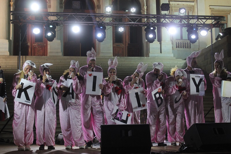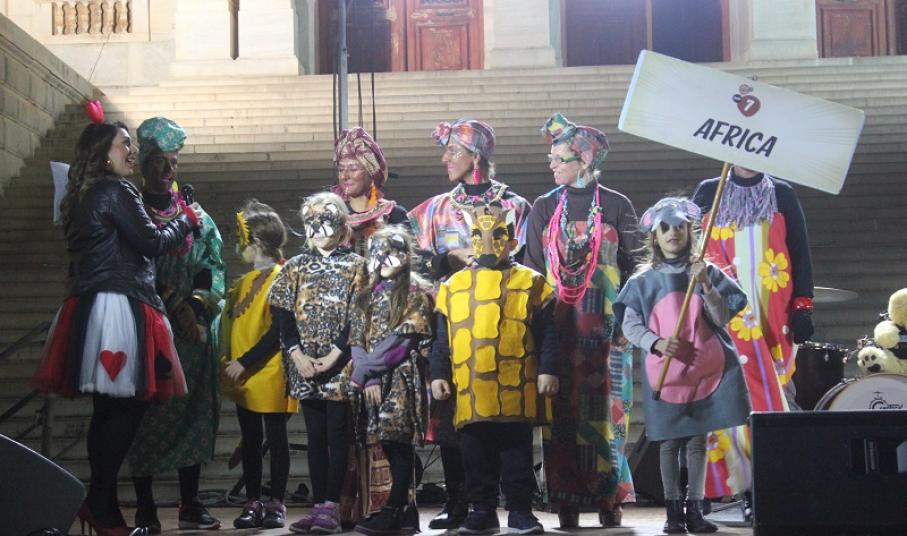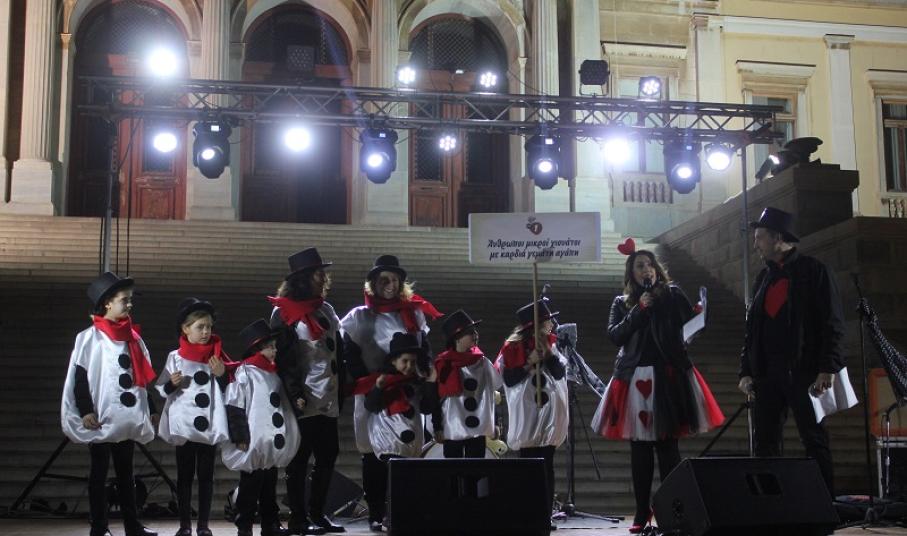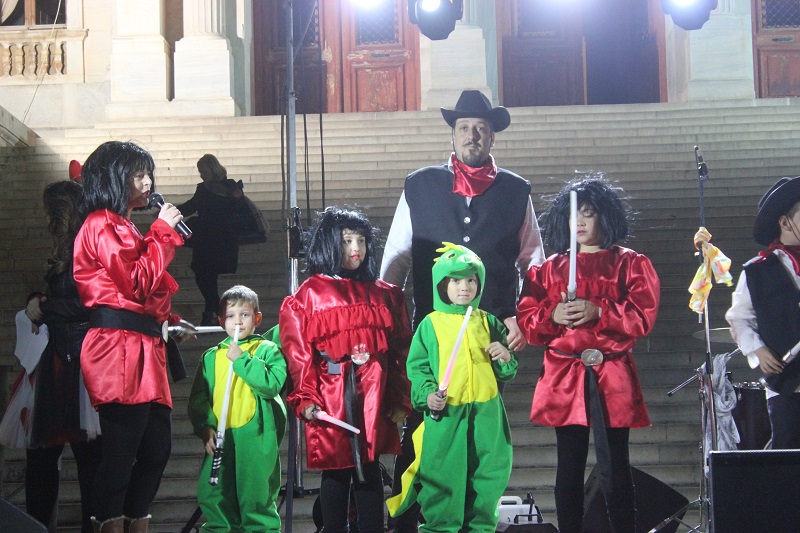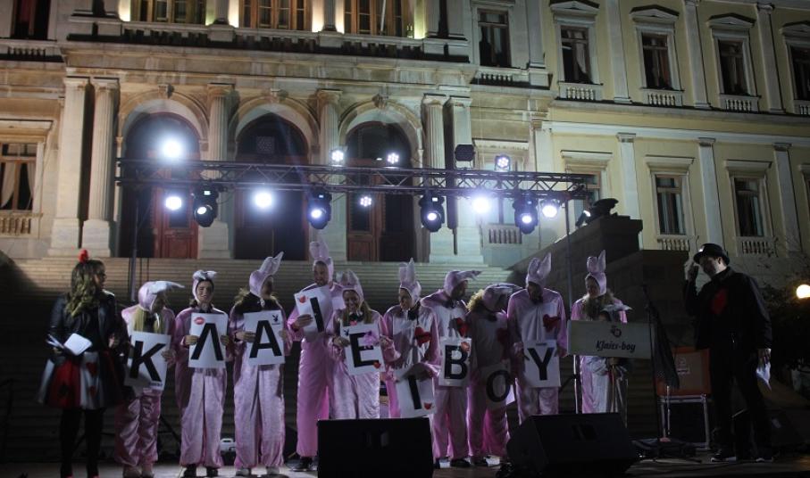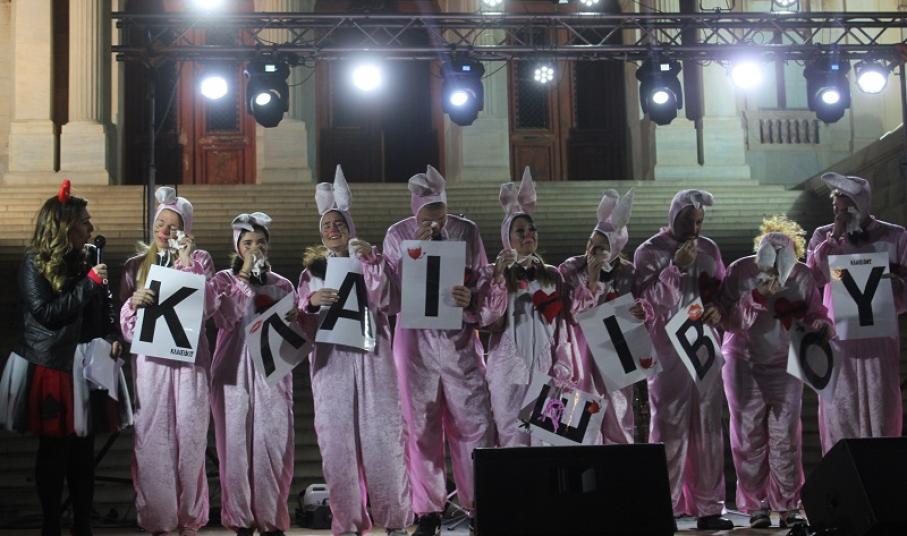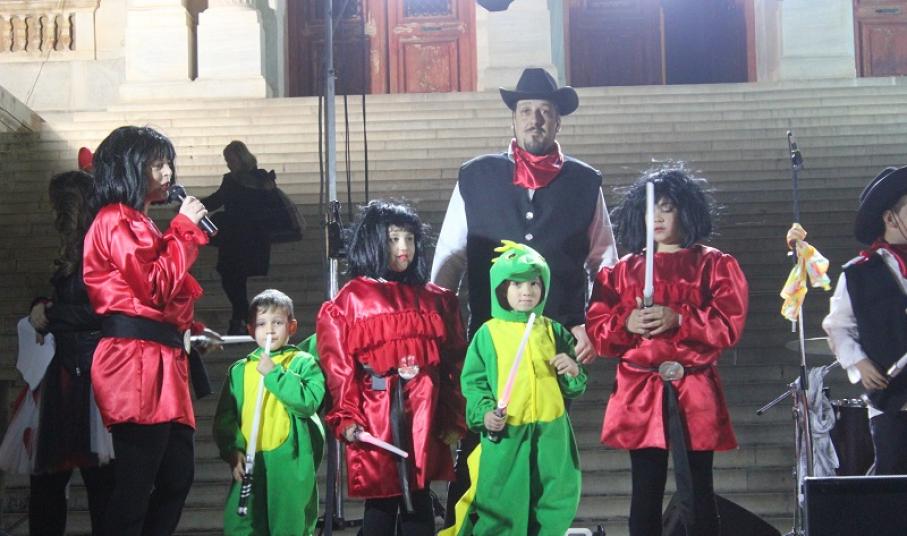 Αμέσως μετά, παρέλασαν στη σκηνή εκπρόσωποι των φετινών καρναβαλικών ομάδων, οι οποίες στο σύνολο είναι 18 (επτά παιδικές και έντεκα ενηλίκων).