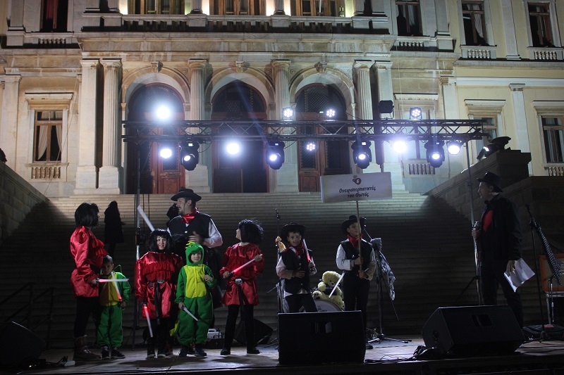 Χαιρετισμό απηύθυνε η Αντιδήμαρχος Πολιτισμού, Θωμαή Μενδρινού, η οποία έκανε αναφέρθηκε στο πλούσιο πρόγραμμα του Συριανού Καρναβαλιού “Γεώργιος Σουρής” 2018 διάρκειας ενός μηνός και στη συνέχεια ανέβηκε στη σκηνή η οργανωτική επιτροπή του 4ου Κυνηγιού Κρυμμένου Λουκουμιού, που υπογράφουν με τη φαντασία, την πρωτοτυπία και τη δημιουργικότητά τους τα μέλη της περσινής νικήτριας ομάδας “Λίθιοι”.
