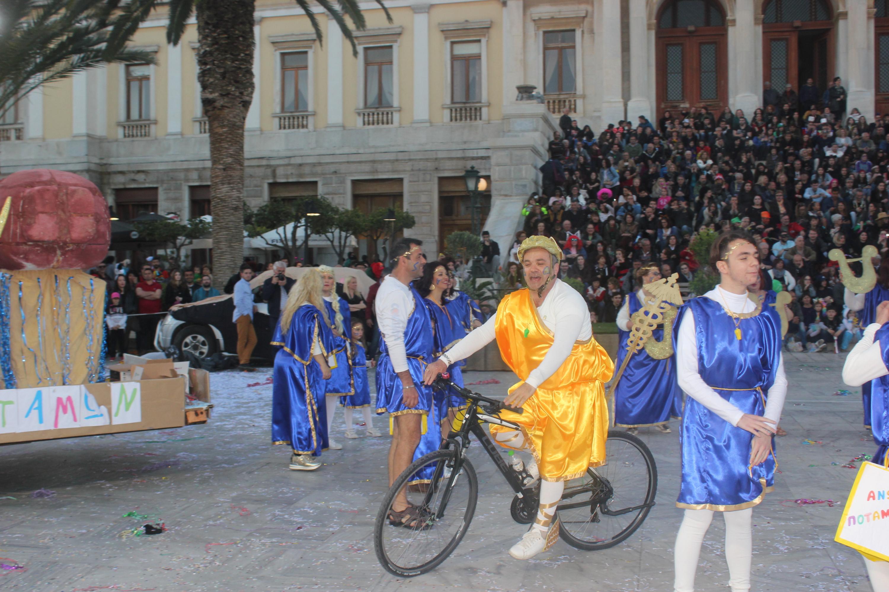 Η εκδήλωση ξεκίνησε λίγο μετά τις 16:00, με τους μικρούς και μεγάλους καρναβαλιστές να ξεκινούν την πορεία τους από το σημείο της Πυροσβεστικής. Παράλληλα, ο σατιρικός ποιητής και συγγραφέας Γεώργιος Σουρής, που υποδύθηκε και φέτος ο ηθοποιός Γιώργος Μιχαλάκη του πέρασε με το άρμα του μπροστά από τα πλήθη που είχαν συγκεντρωθεί στην παραλία της Ερμούπολης. Το άρμα επιμελήθηκε ο εικαστικός Γιάννης Δανέλης, τον οποίο μάλιστα αναγνωρίσαμε ως μία πανέμορφη ανθισμένη μαργαρίτα στην ομάδα των Πεζοπόρων Σύρου.