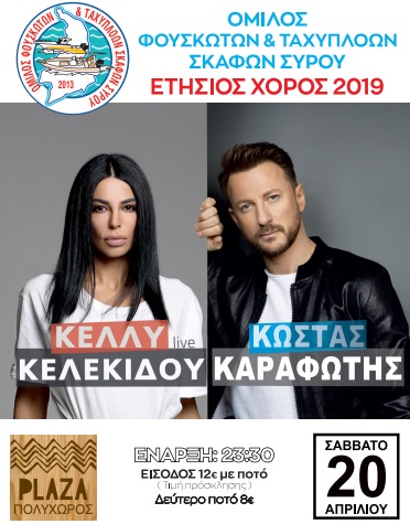 Ο Όμιλος Φουσκωτών και Ταχυπλόων Σκαφών Σύρου σας προσκαλεί στον ετήσιο χορό του, ο οποίος θα πραγματοποιηθεί το Σάββατο 20 Απριλίου στον Πολυχώρο Plaza.