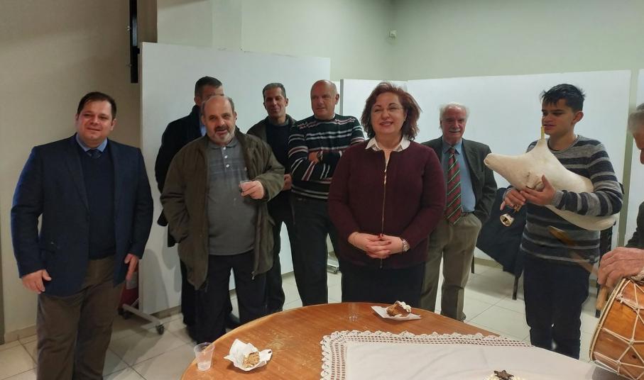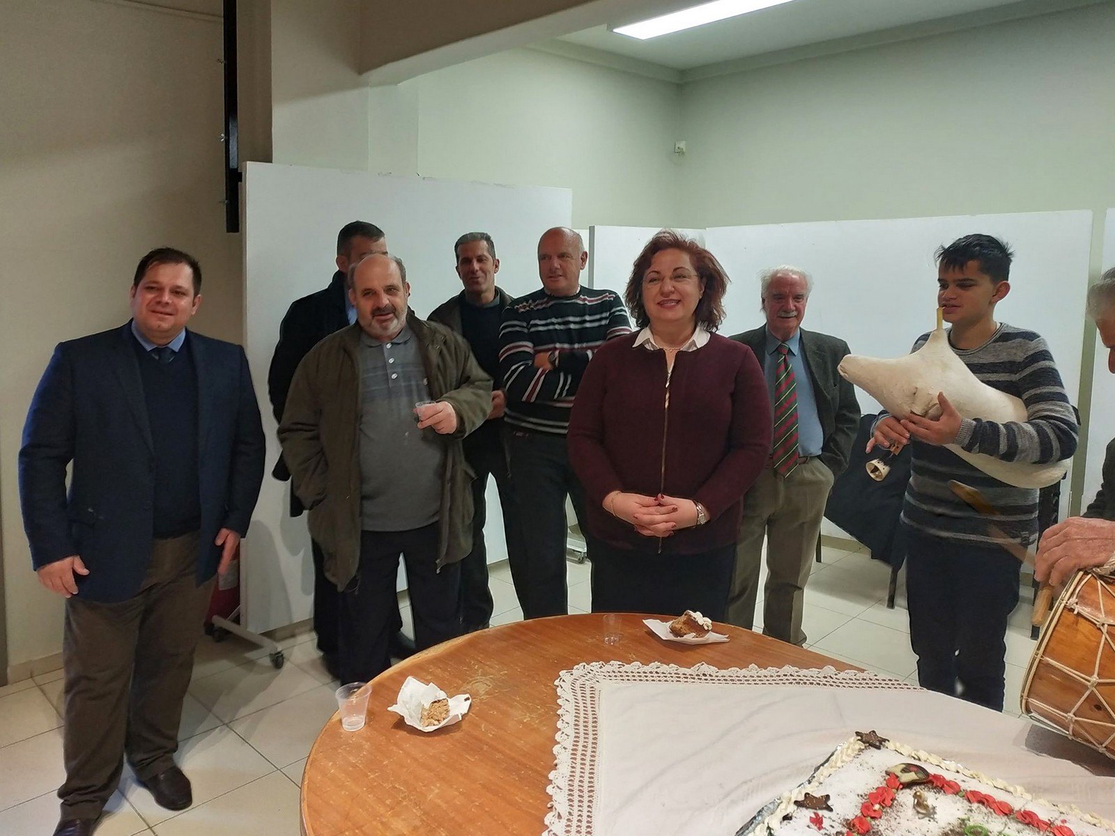 Λίγο αργότερα έγινε η κοπή της πίτας στο Πνευματικό Κέντρο Στυλιανός Ρέστης. Ευχαριστούμε θερμά τους Νίκο Σέρβο, Στέλιο Πολίτη και Αιμιλιανό Λαγκώνη, οι οποίοι πλαισίωσαν τα Τζιώτικα Κάλαντα με τσαμπούνα και τουμπί.