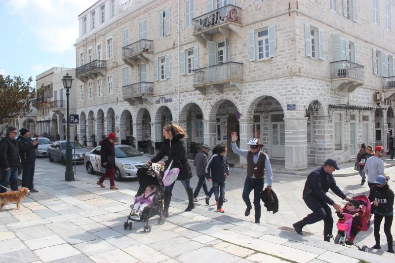 Η πρωτοβουλία του Συλλόγου Δρομέων Σύρου που αγκαλιάστηκε και υλοποιήθηκε από το Αυτοτελές Τμήμα Πολιτισμού & Τουρισμού, στο πλαίσιο των αποκριάτικων εκδηλώσεων του νησιού πήρε σάρκα και οστά το πρωί του Σαββάτου, βάζοντας στο κλίμα των ημερών τους επισκέπτες του κέντρου.