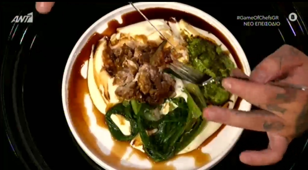 Ο Αλέξανδρος που τα τελευταία έξι χρόνια λειτουργεί το δικό του εστιατόριο μαζί με τη σύζυγό του στο νησί παρουσίασε ένα ιδιαίτερο πιάτο που δεν ήταν άλλο από αρνίσια μυαλά με χόρτα, πουρέ πατάτας και παλαιωμένο ξύδι.