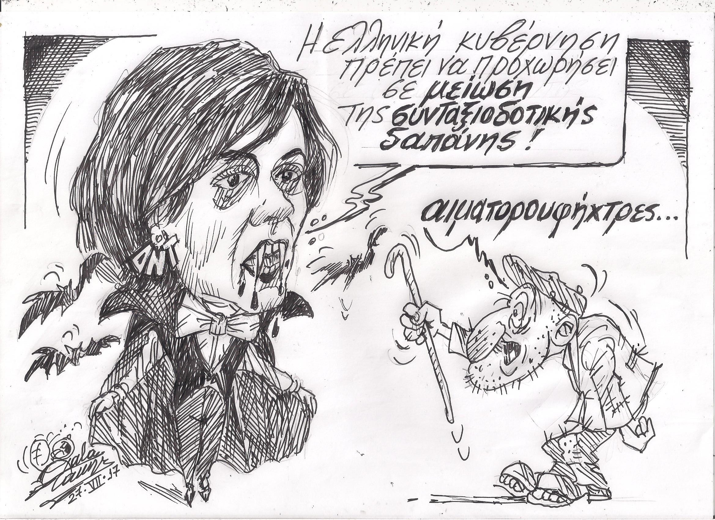 Σκίτσο του Τάκη Χάλαρη με θέμα: " Αιματορουφήχτρες"