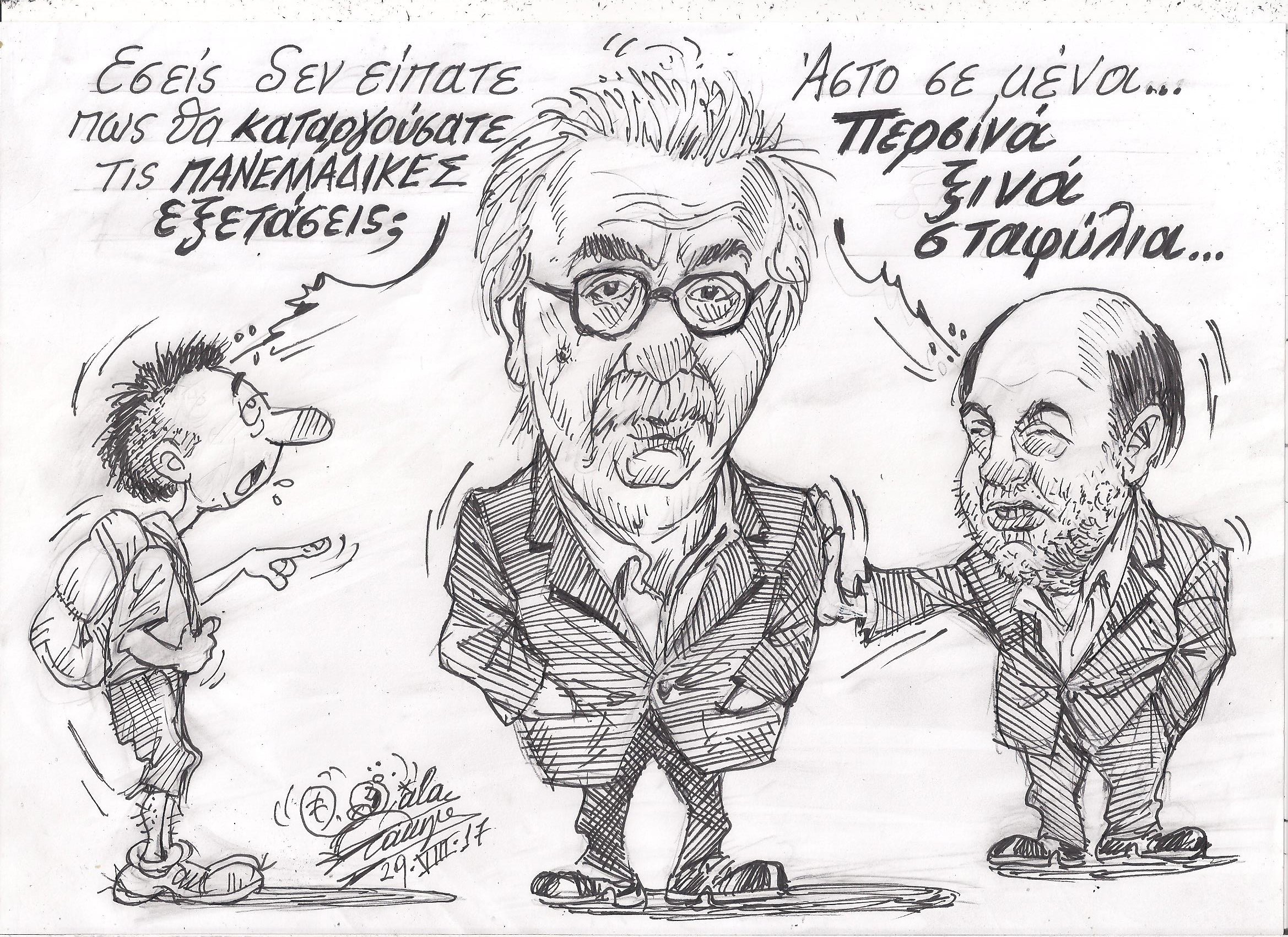 Σκίτσο του Τάκη Χάλαρη με θέμα: "Περί Πανελλαδικών"