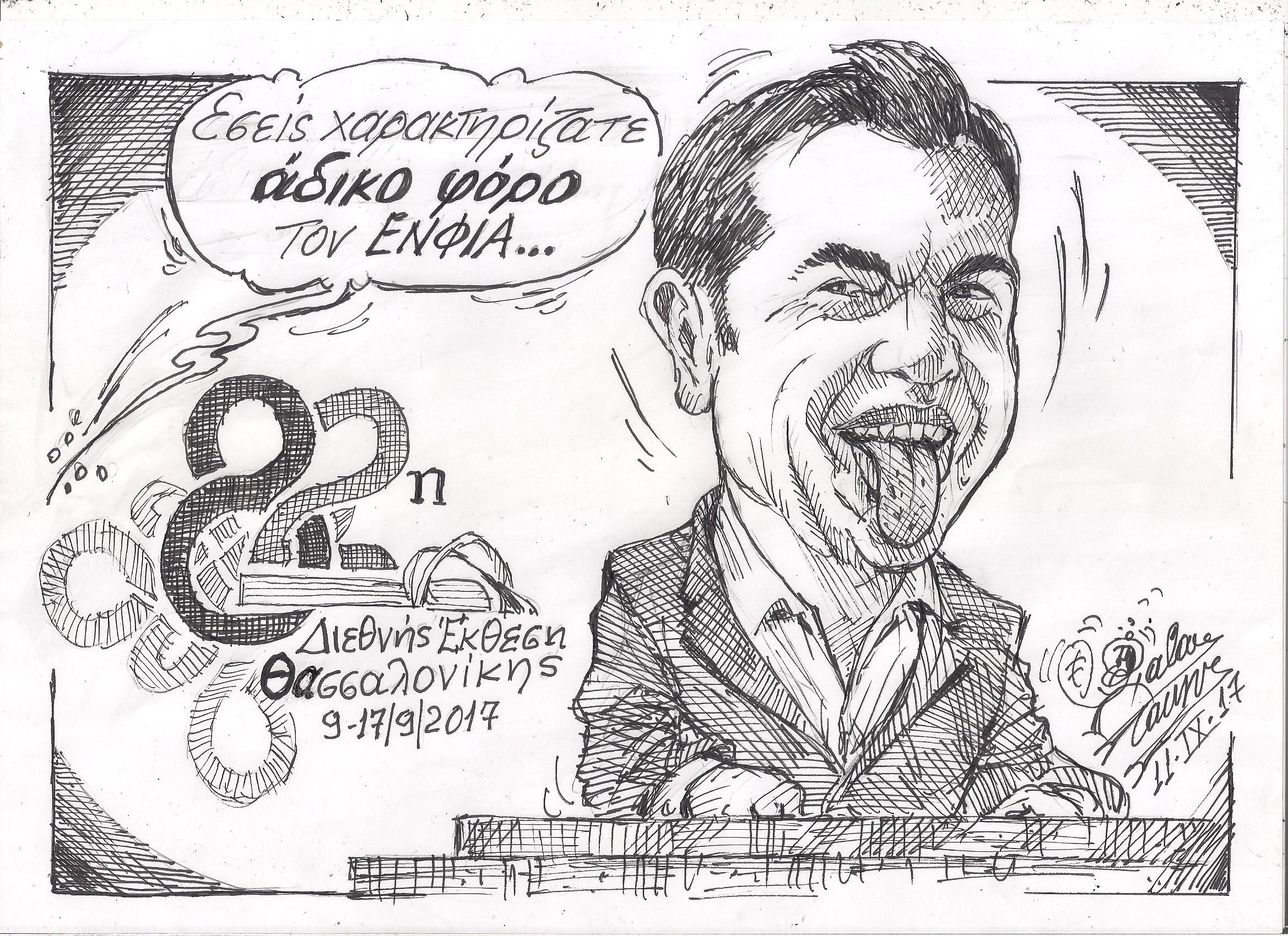 Σκίτσο του Τάκη Χάλαρη με θέμα: "Συνέντευξη Τύπου"
