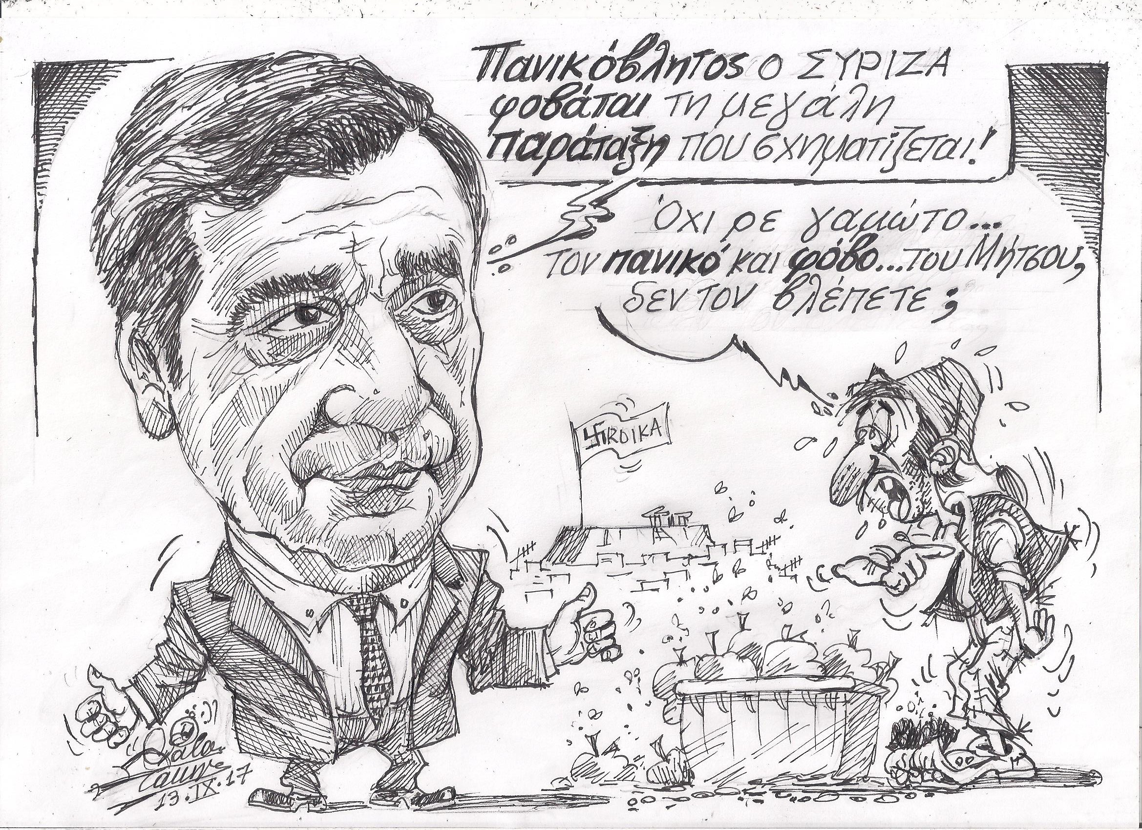Σκίτσο του Τάκη Χάλαρη με θέμα: "Δήλωση Καμίνη"