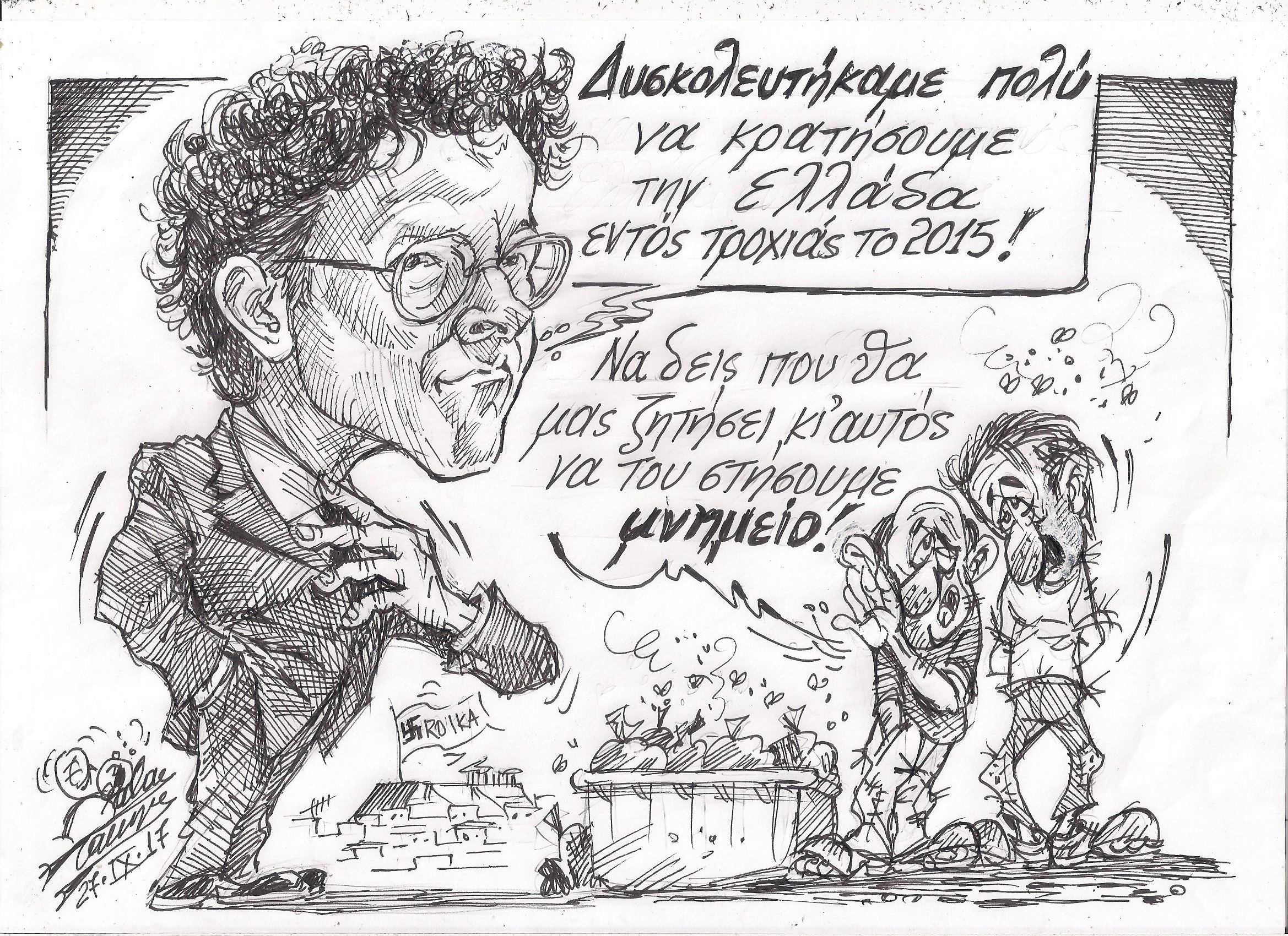 Σκίτσο του Τάκη Χάλαρη με θέμα: "Άλλος για μνημείο"