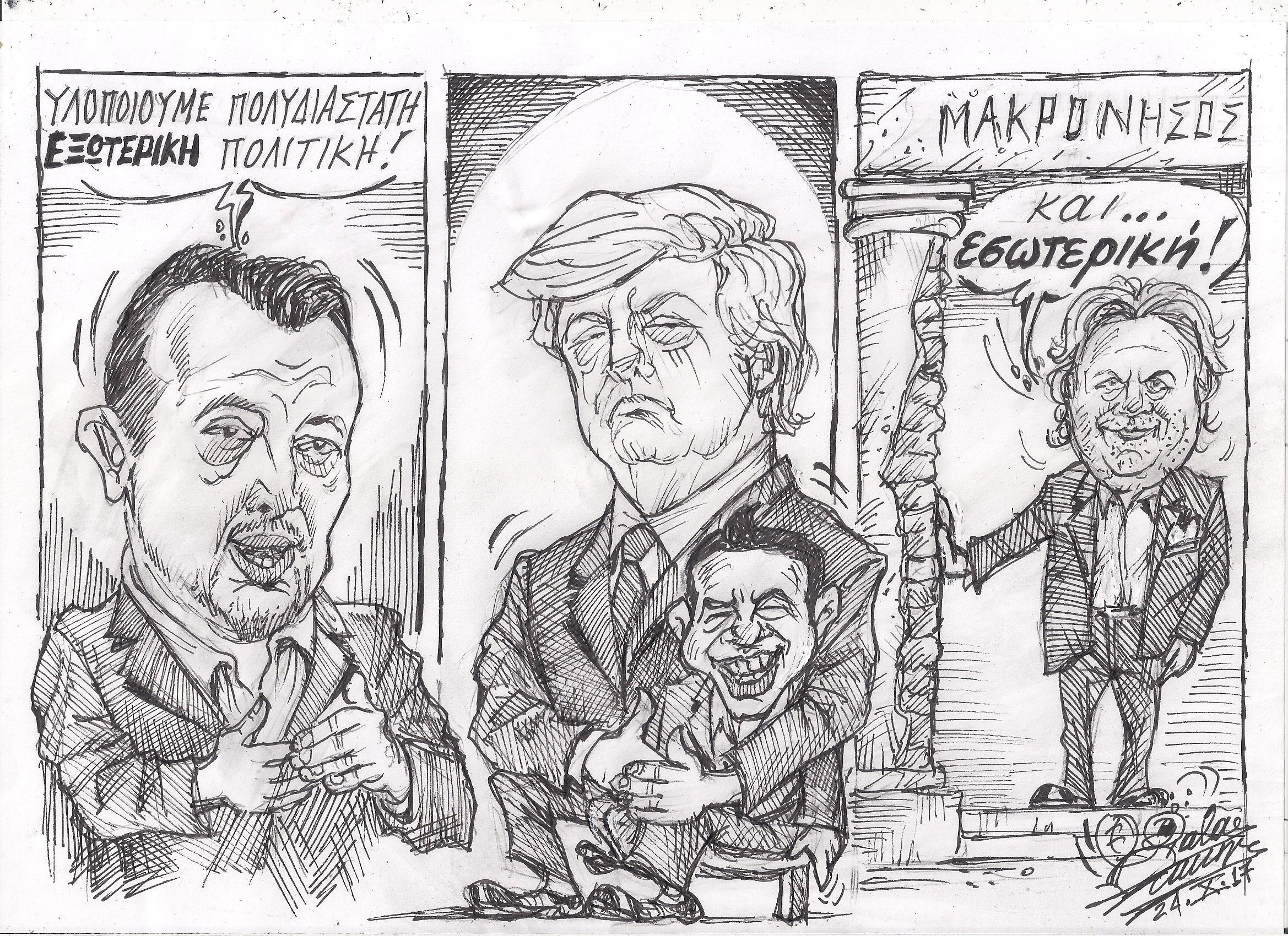 Σκίτσο του Τάκη Χάλαρη με θέμα: "Πολυδιάστατη Πολιτική"