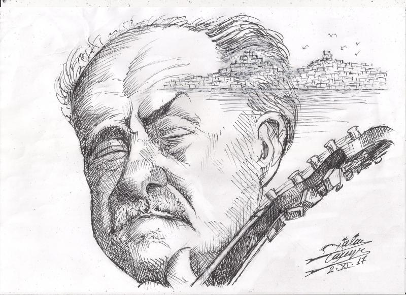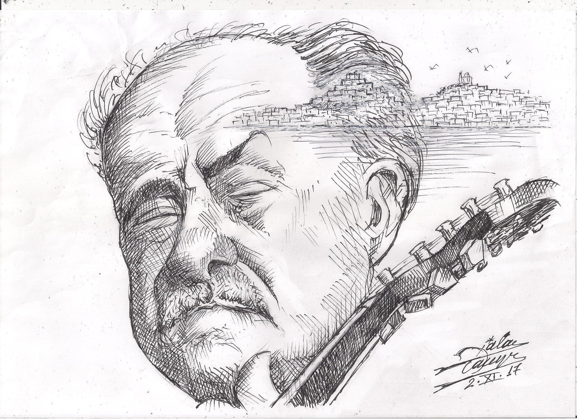 Σκίτσο του Τάκη Χάλαρη με θέμα: "Επιστρέφει στη Σύρα του"