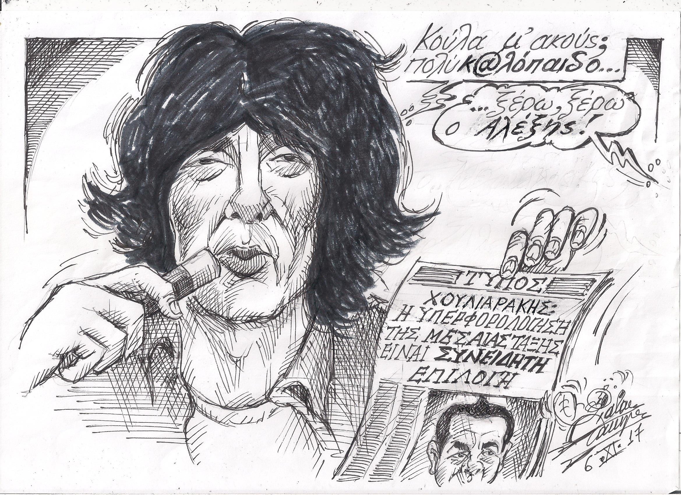 Σκίτσο του Τάκη Χάλαρη με θέμα: "Σαν σε βιντεοταινία"
