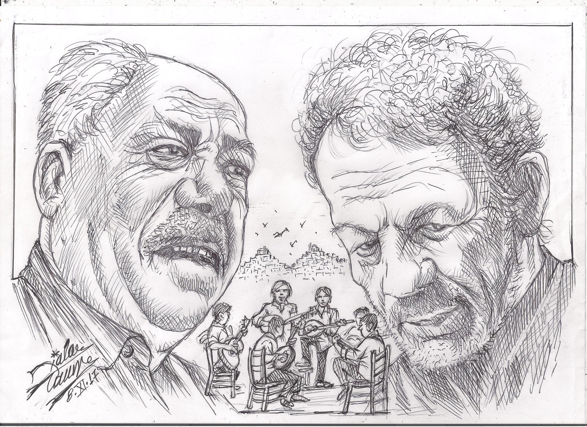 Σκίτσο του Τάκη Χάλαρη με θέμα: "Εν Χορδαίς και Οργάνοις"