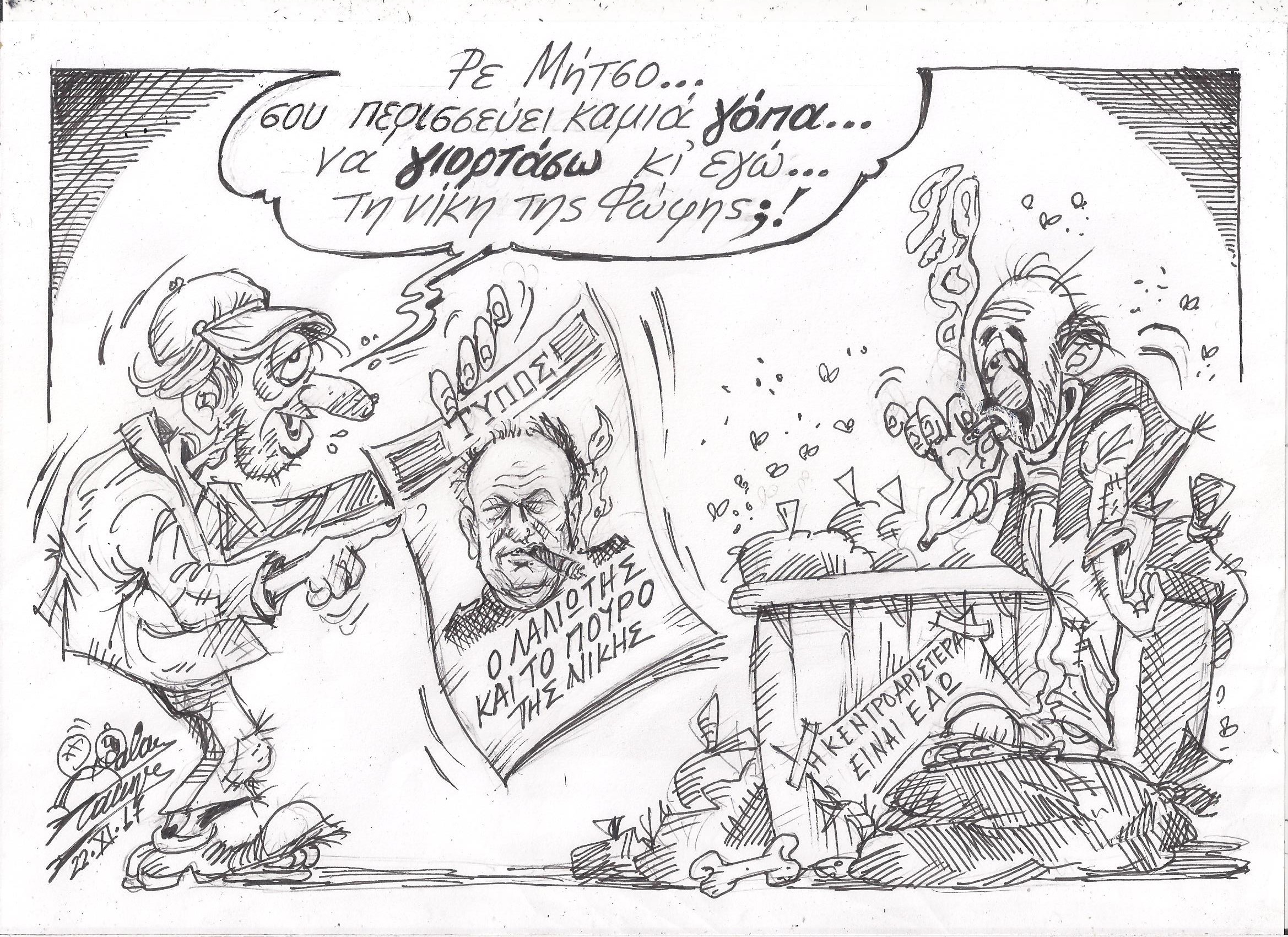 Σκίτσο του Τάκη Χάλαρη με θέμα: "Το πούρος της νίκης"