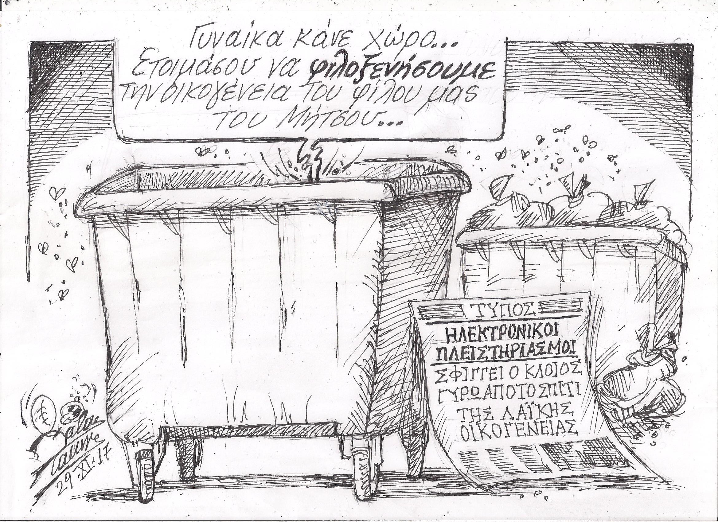 Σκίτσο του Τάκη Χάλαρη με θέμα: "Ηλεκτρονικοί Πλειστηριασμοί"