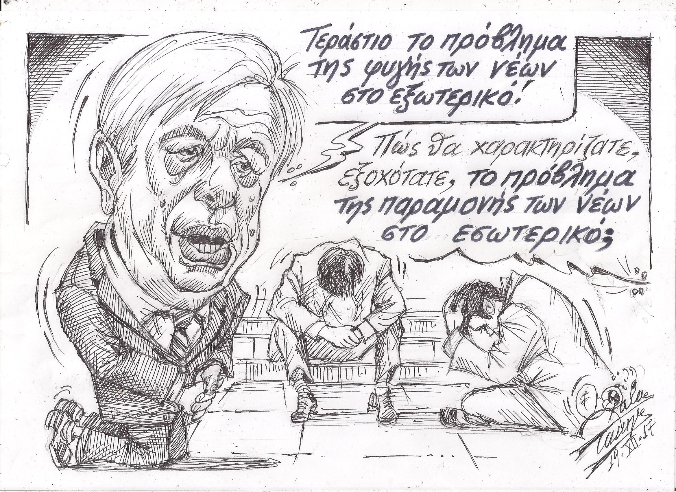 Σκίτσο του Τάκη Χάλαρη με θέμα: "Φυγή και Παραμονή"
