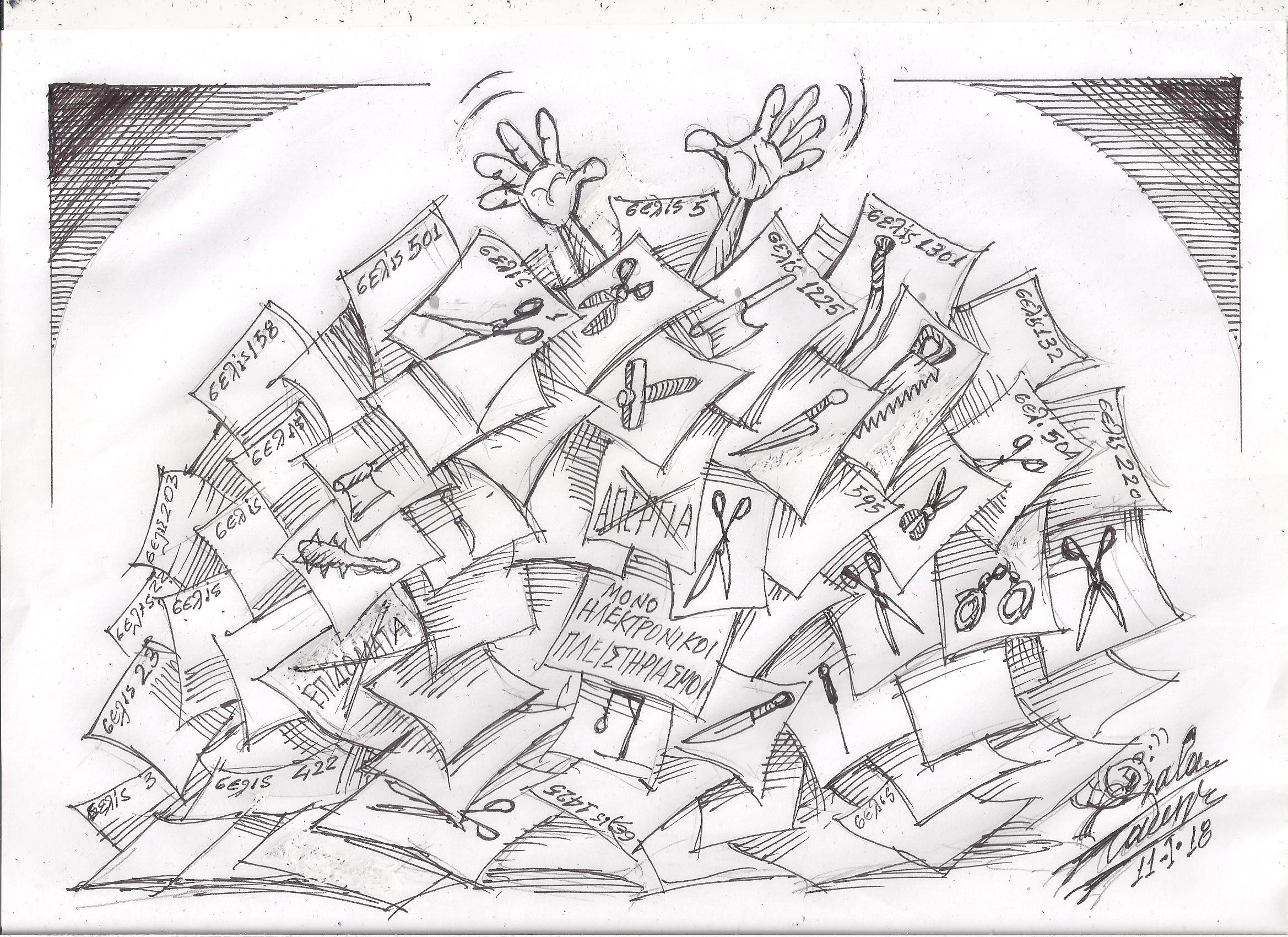 Σκίτσο του Τάκη Χάλαρη με θέμα: "Πολυνομοσχέδιο Πολυσέλιδο"