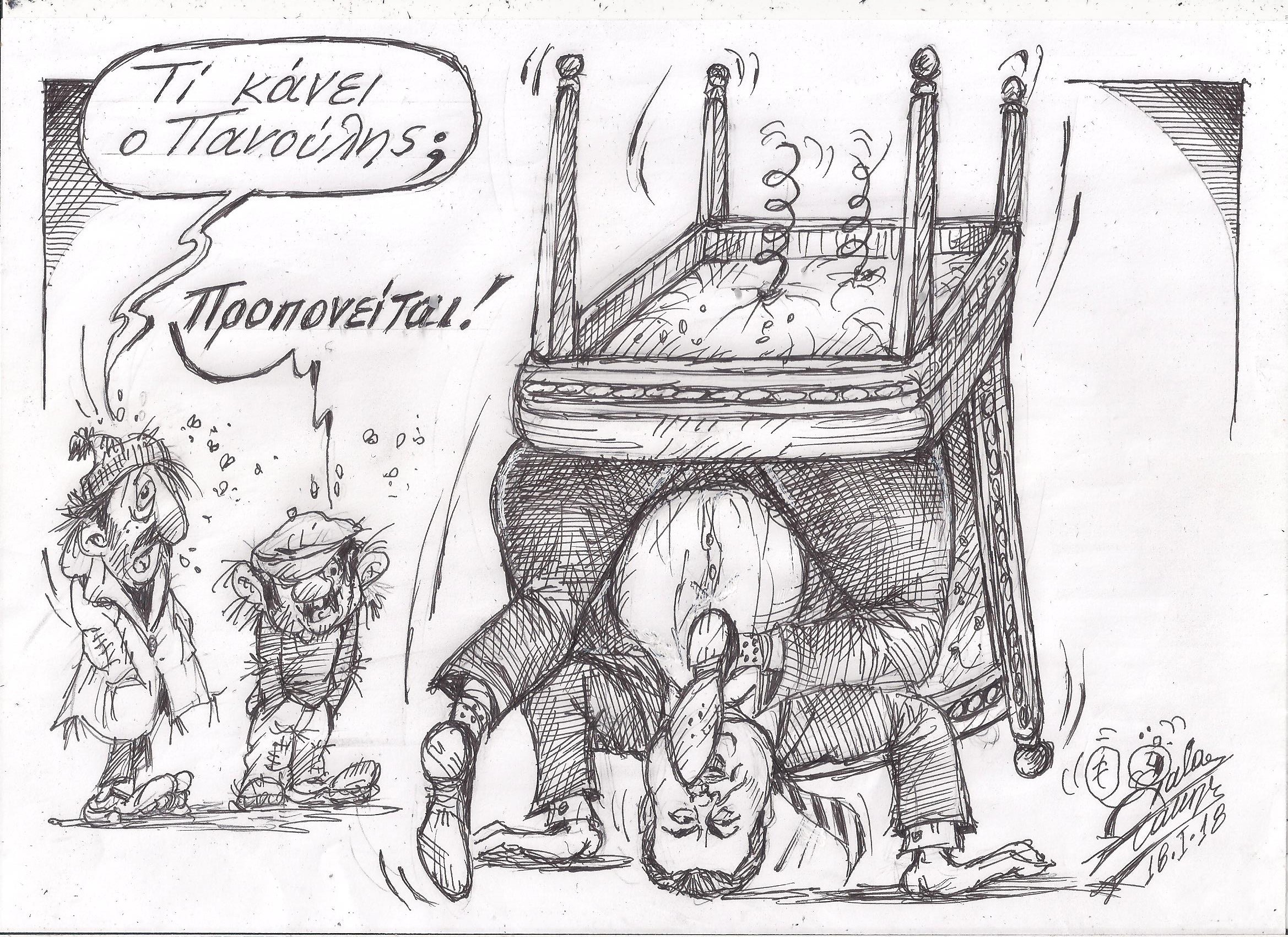 Σκίτσο του Τάκη Χάλαρη με θέμα: "Προπονείται"
